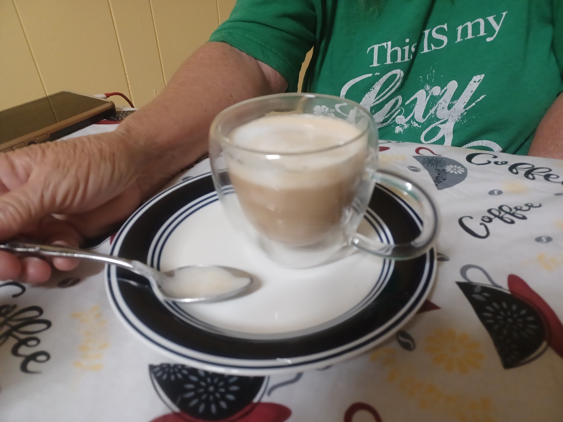 Drinks: Coffee with chicory - the coffee was about the strength of what you get in a house 🏡 coffee at Starbucks. I would prefer it to be about 2/3 this strength, but it was good and I drank it all.