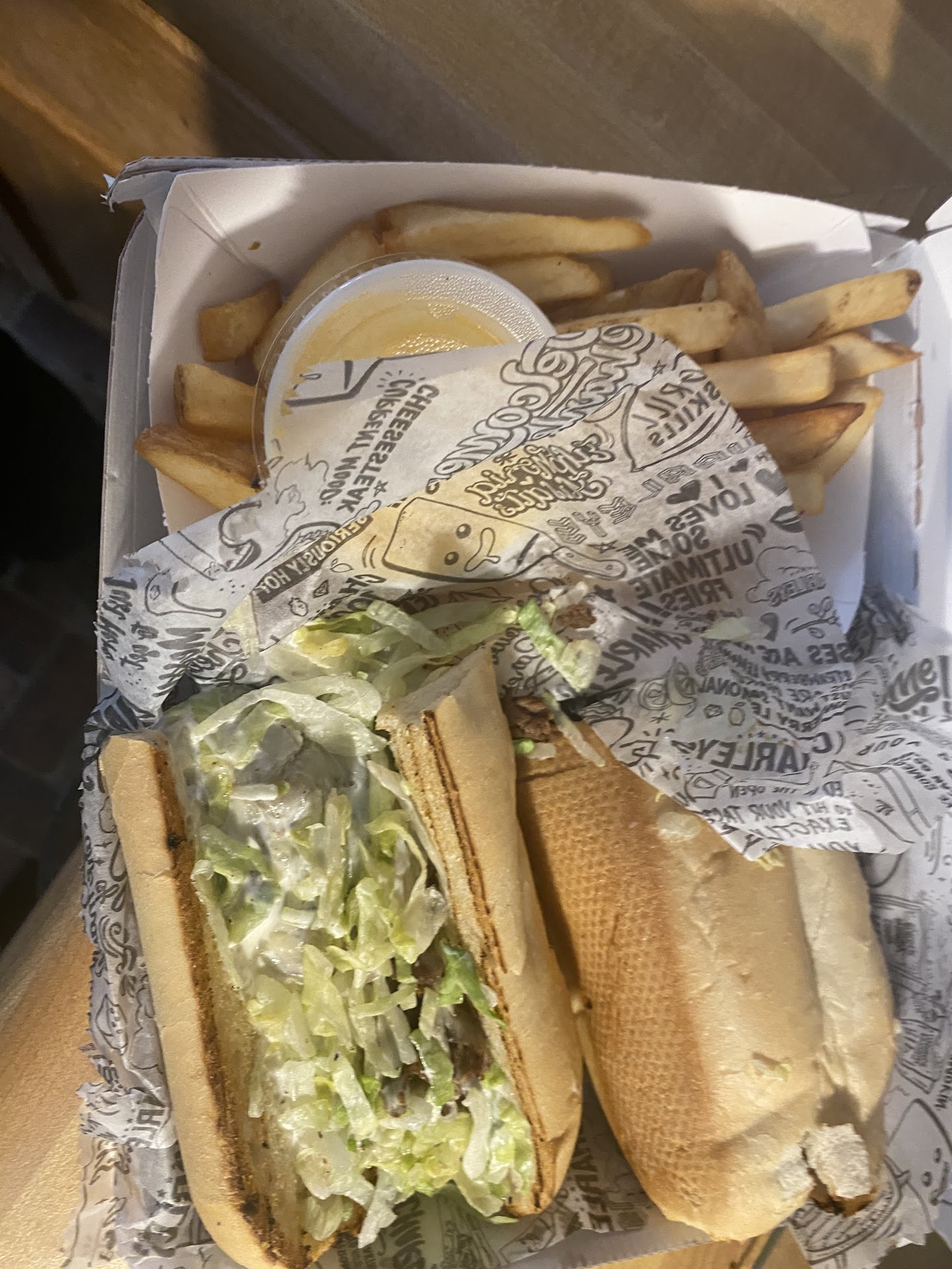 Read moreVisited the store at 230pm today to place a to go order and I was the only patron in the store at that time and it was so dirty. Trash receptacle was full. Trays, napkins, food strewn everywhere in all four corners of the dining area. The employee who came out to ring me up was completely distracted by the airpod in his ear and asked me to repeat my sandwich order because he was busy listening to what was playing in his ear. The second employee came out of the back to cook my order and he too had airpods in his ears and was not paying attention to the meat on the grill. He ended up burning my steak and did not put the mushrooms requested on my chicken. I had to ask if he was going to put mushrooms on that sandwich and his reply was "Oh I didn't see that". As my order was being bagged there were several (at least 3) orders that came in from online and both employees huffed and puffed because they were now going to have to work a little bit more. One of them went to to back and grabbed another employee who seemed to be waking up from a nap, as she rubbed her eyes and yawned on her way out of the back door. Will not return to this store unless these people can clean the store and pay better attention to...