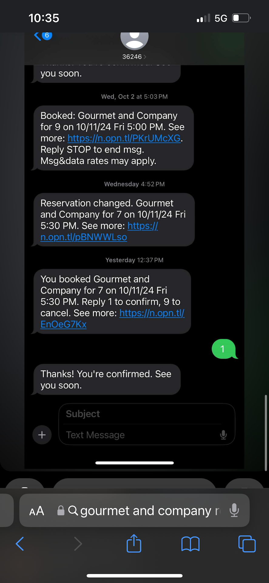 My maid of honor had chosen this spot as one of our dinners for my bachelorette. She has been here twice, and only had good things to say as well as good experiences. We were a group of 7 girls. The reservation was for 5:30pm. One of our girls is a mom, and was running late due to last minute changes in child care. After 10 minutes, we call her to make sure she is okay, and she tells us she will be there in 5 minutes. At 5:45-5:50pm, who we assume is the manager comes over to our table and asks if our last person is still coming. We say she is 5 minutes away, to which he says our reservation was at 5:00pm, and we have been waiting for our friend this whole time (the specials were not going to be told to us until everyone was there) and they were expecting other parties to come in at 6:00pm. Important to note, we had been ordering drinks and appetizers during this time. It is not as if we were sitting there with just waters. We were baffled by the rudeness of basically being rushed and made to feel unwelcome because ONE person was 20 minutes late. If the reservation has a time limit, this needs to be told to the guests. OR we shouldn’t have been sat until our whole party was there. He did not even ask to see the confirmation of the reservation, which clearly says 5:30pm, to assure that he was not mistaken, as someone with proper customer service skills would do. Our original reservation was 5:00pm, but it had been changed, which is proven by the messages attached.