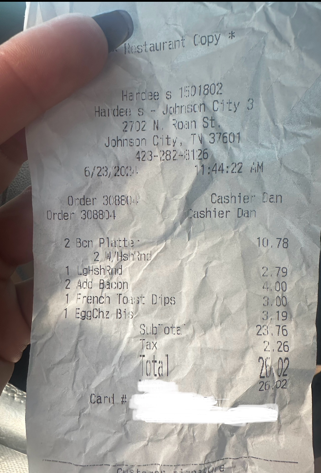 Read moreWe just had an incredibly wholesome experience at our local Hardee’s on Roan St. where they really made sure that their drink special was truly gluten free. And even tho it turned out it wasn’t after they told us it was, they still didn’t hesitate admitting the mistake! And then we collaborated to use the cherry concentrate (the limited time part of their special drink and what I’m interested in) and I ended up with hi-c orange 🍊 with the cherry concentrate which is very refreshing BTW and if one of the employees hadn't suggested it i wouldn't have thought of it. I’m so touched by their kindness; even the words they used were super kind and they didn’t rush us through the line, which I find so common these days (getting rushed), and they were all huddled around the lemonade carton to read each and every ingredient and looking for the certified gf note that I need for certainty, and in view of the drive-thru window, without me asking- their proactive and thorough nature is unexpected and very appreciated because I have celiac, not a dietary preference but a true and challenging gluten allergy-- and they did not let me just brush it off. It was so wholesome and exceptional customer service. I was...