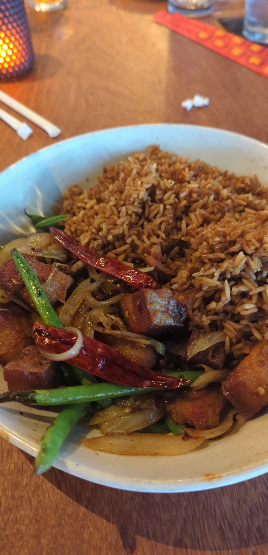 I have eaten at Juan Siao many times, but my lunch there on December 26, 2023 was nothing short of terrible – from service to food. We seated ourselves and a gentlemen walked by us several times before even acknowledging us – finally he can and asked us if we wanted something to drink – we ordered and then he still never offered menus. So, after a wait he brought the drinks and still never offered us menus – we have to stop him and ask for menus. We made our choices, had to ask him to take our order and were told hold on he would be back in a minute to take the orders. He finally came back and we ordered an appetizer (Chorizo Fries), two lunch orders Birria Tacos w/cheese on the side and Orange Chicken, no peppers, white rice and a spring roll. The Chorizo fries came out and they were amazing – but it was difficult to get the fries out with any of the toppings (cheese, chorizo, green onions) so I asked for a spoon (from our waiter) – he never brought it but he walked by out table multiple times and still never brought it – I asked a server that walked by for a spoon, finally he said he would have to walk downstairs for the spoon and then after a while another person brought the spoon. As you may guess, the appetizer was cold by then. Before the lunch choices came out the waiter brought us more drinks – ever though we had not finished the ones we had. When our lunch choices came out we notices the Birria Tacos had cheese on them and my Orange Chicken looked very dark in color. The waited came by again and asked if everything was ok – at this point we had not ever tried the food yet, but he proceeded to bring us another drink, so the table was covered in 6 glasses of pop and one glass of water. We proceeded to eat and I realized the chicken was over cooked and there was no hint of any orange flavor and the Birria Tacos, really did not have any flavor either. I continued to stir it around hoping for come flavor and it never happened. After we had finished eating (what we could) we had to finally ask for the check. When he brought the check, he placed it on the table in a huge wet spot from all of the sweating from the glasses, we then had to ask for a napkin to wipe off the table. I proceeded to tell him about the meal and all he said was – I wish you would have told me sooner – he never ever said he was sorry – we paid the tab and finally lunch was over. I was super disappointed because this was the first visit for the person with me and she will not be going back – based on this meal. The service and food were both...