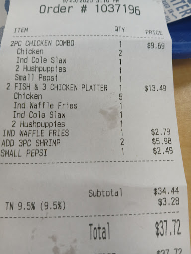Read moreThe last two times I have went through drive through they have left out pieces of chicken or fish in the family meal I get. Also, they get the amount I tell them for each wrong. 8 chicken and 4 fish (12 piece family meal) missing two pieces of fish. The time before that, same meal 8 chicken 4 fish, get it home and it's missing 4 pieces of chicken! I called and they did write it down that I was owed 4 pieces of chicken, went by a week later and they honored it and I got my missing chicken. Food is sometimes not hot as it should be, luke warm. Price is expensive for a 12 piece family meal and any other. But it's the only Long John Silver's close to us.