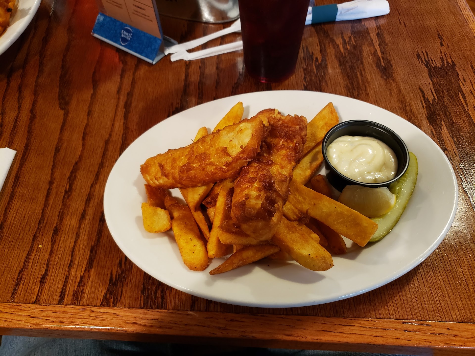 The fish and chips were without a doubt the best in east Tennessee by far. The thick, flaky, perfectly cooked cod with an extremely flavorful, crispy beer batter is on a new level of delicious. The fries were thick cut and crispy on the outside but creamy and fluffy on the inside. The dish came with a nice tartar sauce and a pickle spear. And to top it off, the table condiments include a bottle of malt vinegar, which in my mind, is a must for fish and chips.