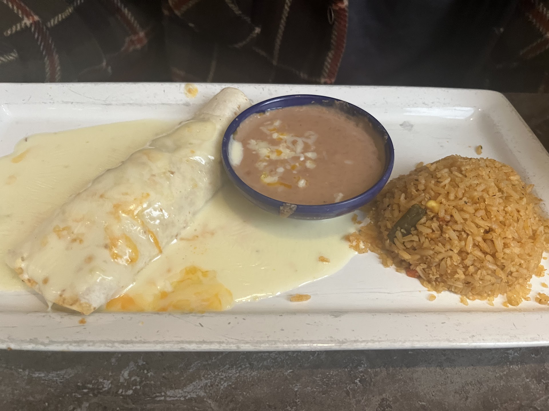 Read moreI was told this was a good restaurant. "Great Caso!" No, it was not great, nor was it good. I got the beef tacos and a supreme burrito thingy. Mine had the chicken in it. No beans. The table qas set with cold, stale chips with a side of black bean dip. If you want salsa, you have to leave your table and go to the "salsa bar." The bar consisted of 3 metal containers stuffed into ice. You use the long metal spoons in an ify, not so clean scoop to plop it into little plastic cups that are not practice for dipping. You can't dip a chip into a thimble. Next, I asked for the chunky guacamole since I had issue with their sauce and dip. The guacamole came out as fast as I ordered it. That was a clue. The guacamole was faded green and mostly brown. Slimy as well. I then asked for a top shelf margarita, it came out and was not even in the ballpark of a margarita. I braved it a bit further and tucked into the giant, caso covered, burrito in front of me. It was not good. It was too salty, tasted like burnt onions, and the chicken was dry and basic flavored. I told the waitress that the tacos were awful, and she said she hates their beef too. Why let me order it??? Warn me! I asked for my check and ran out of there. I ordered on doordash from elsewhere and got something more trustworthy, a great burger and fries. I am praying I dont end up with food poisoning since I am here to give training all weekend to a local company. There were so many flies inside the building, I had to wave them away with every bite. I felt I was back in Turkey eating st an alley cart. Avoid this place. I will update whether or not I...