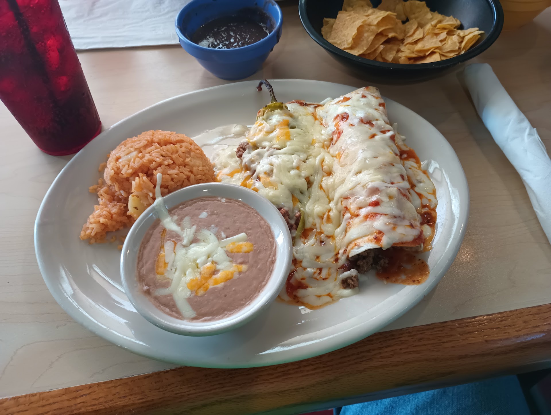 Tried out Si Senor the other night. The food is just ok. I got the quesadilla grande which is one of their recommended items. I got it with carne asada. It was extremely salty. My wife got the burrito majado which is also a recommended item, and she said it wasn't great. She did not finish hers. We also got the chorizo dip and it was swimming in grease. The grease was so much you could pour it off of the dip. I got a side of guacamole with my food which wasn't very good. It was the texture of toothpaste, far too creamy and liquidy to feel like it was made fresh in house.