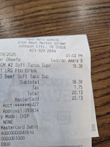 Read moreThe Taco Bell on West Market Street made me wait 20 minutes for a doordash order along with another female who waited the same amount of time. Workers had an attitude with me when I told them I needed the order finished because I had another order I needed to pick up and they were making me late for both. I explained that their negligence was taking away from my money and my time schedule. They ignored me until I told them multiple times I needed the order completed. Was supposed to pick it up by 9:21 pm (I arrived before it was supposed to be picked up) and I did not leave the store until 9:40 pm. When the order was done, it was not even handed to me, they put it off to the side for me to get. Then, when I asked for the number for corporate they told me they didn’t have corporate and told me the “owners number” which was not the owners number at all. The absolute disrespect, negligence, and disregard for my concerns was horrible. Since I couldn’t reach the owner I figured I’d rate it because it will be seen and heard one way or another. It was night shift on 06/22/23 and I have already given...
