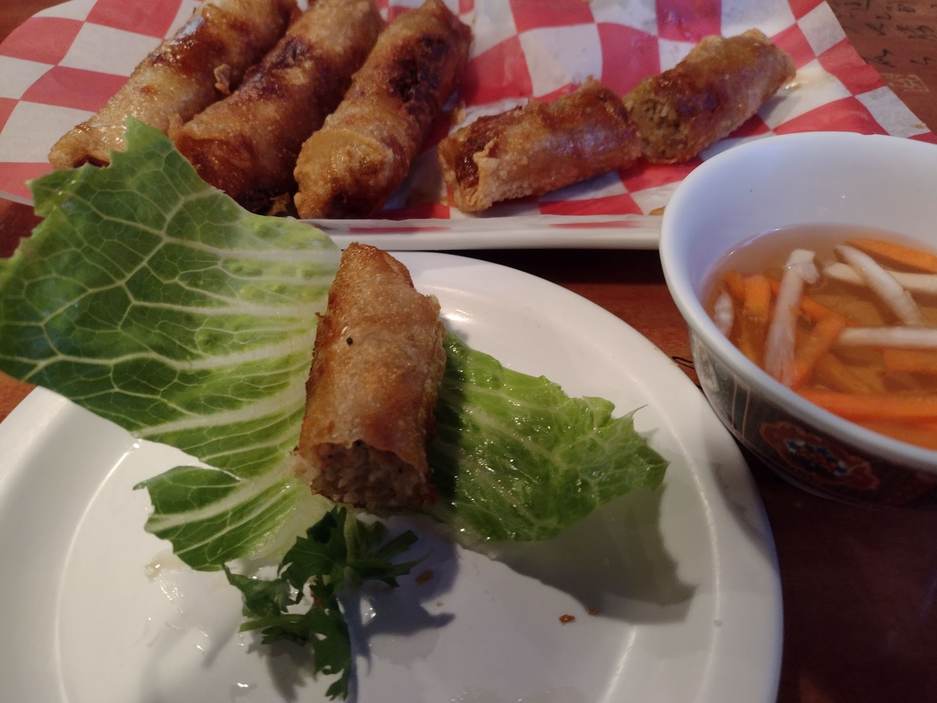 Read moreTweeks Road Trip Food Review: The Roots Vietnamese Restaurant and Coffee Shop is a trendy little mellenial Vietnamese joint that feature my favorite fried spring rolls (I don't know why they call them egg rolls.. bc they have no egg in the rice paper wrapping). This style of fried roll is like nothing you've had before, and eaten with lettuce, cilantro and nuoc mam (aka dipping sauce or prepared fish sauce ).. there is nothing like it anywhere else. Only like 1 out of 20 Vietnamese joints even have this style -- fried dark, crispy with a blistered/bubbly surface.. a MUST try. Be sure to cut them in half before dressing them up and dipping. Each piece is (traditionally) wrapped in a piece of lettuce, given a dip of sauce, a pice of cilantro poked into it, and an optional dab of Sriracha on each bite.. and is is pure heaven. This dish alone is why I gave five stars, as it is on of my favorite traditional Vietnamese sides. That being said, they did not have many other authentic, old Vietnamese selections like fish in n a clay pot or chicken lemongrass.. but this "boomer" will cut them some slack, as millennials. ;)