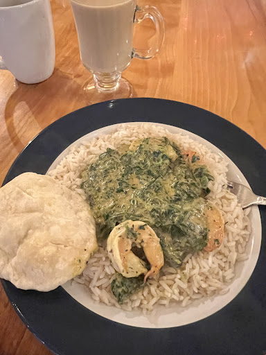 I sat at the bar. The staff was very friendly and the food was delicious. I had the Shrimp Sagg Curry. The food was served nice and hot. The Shrimp, sagg and rice were fantastic. Also, I loved the cute little Nan bread.