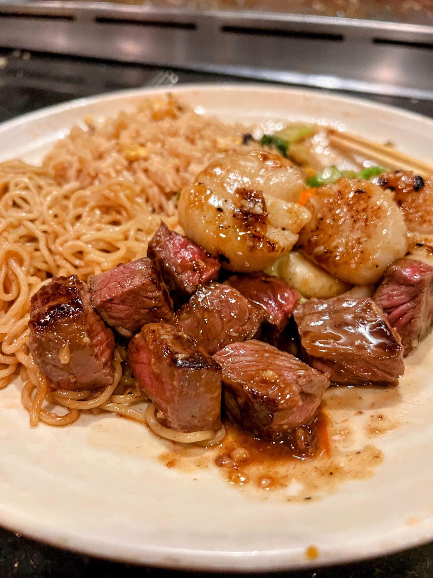 Ā Ā Ā Read moreI'm happy this is not the only hibachi spot in Rhode Island because they have capitalized on quantity over quality. If you enjoy sitting elbow to elbow with the people at the table next to you, then this is the spot to go. If you like having to yell at the people at your table in order to hear one another, then this is the place to go. We had 2 vegetarians in our party, including a child who wanted white rice with a scambled egg... the same as is used in fried rice. They would not accommodate the request. The other vegetarian asked for a tofu stir fry, and they also DENIED the request with some ridiculous excuse that the tofu was only used for their miso soup. The manager was completely dismissive. Additionally, this restaurant seems to hold a couple of hundred people and only has a 2 stall bathroom for women! One of those stalls had overflowed, and there was nasty toilet water all over the bathroom floor for some time before it was attended to. The smell was horrendous, and it required you to walk through the mess to get to the working stall. How they "attended" to it was to have a few bus boys and the dismissive manager put a "wet area" caution sign to prop the door open, which led to the smell pouring out into the hallway, right next to the sushi area. Needless to say, they have lost the business of quite a few people since our party was relatively large. Definitely NOT...