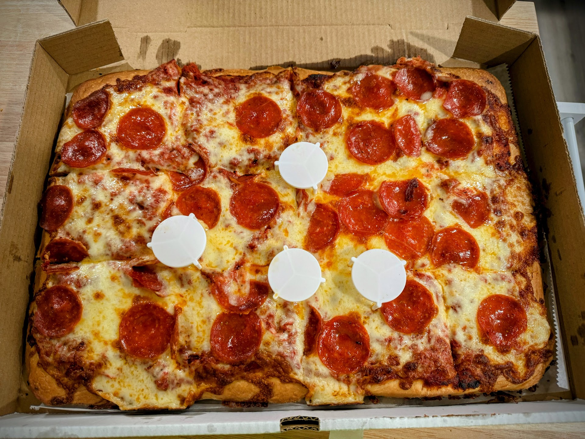 However... The large pizza was the worst thing to come to the table: Let's start with the most important part of a pizza, the dough, it was bready, bland, so thick to the point of being undercooked, if it was any more I would have sent it back, it felt like you're gonna chip a tooth on the crust and above all it was just really underwhelming on flavor, if it was properly stretched and cooked I don't think I'd be writing this. 2/10 dough.