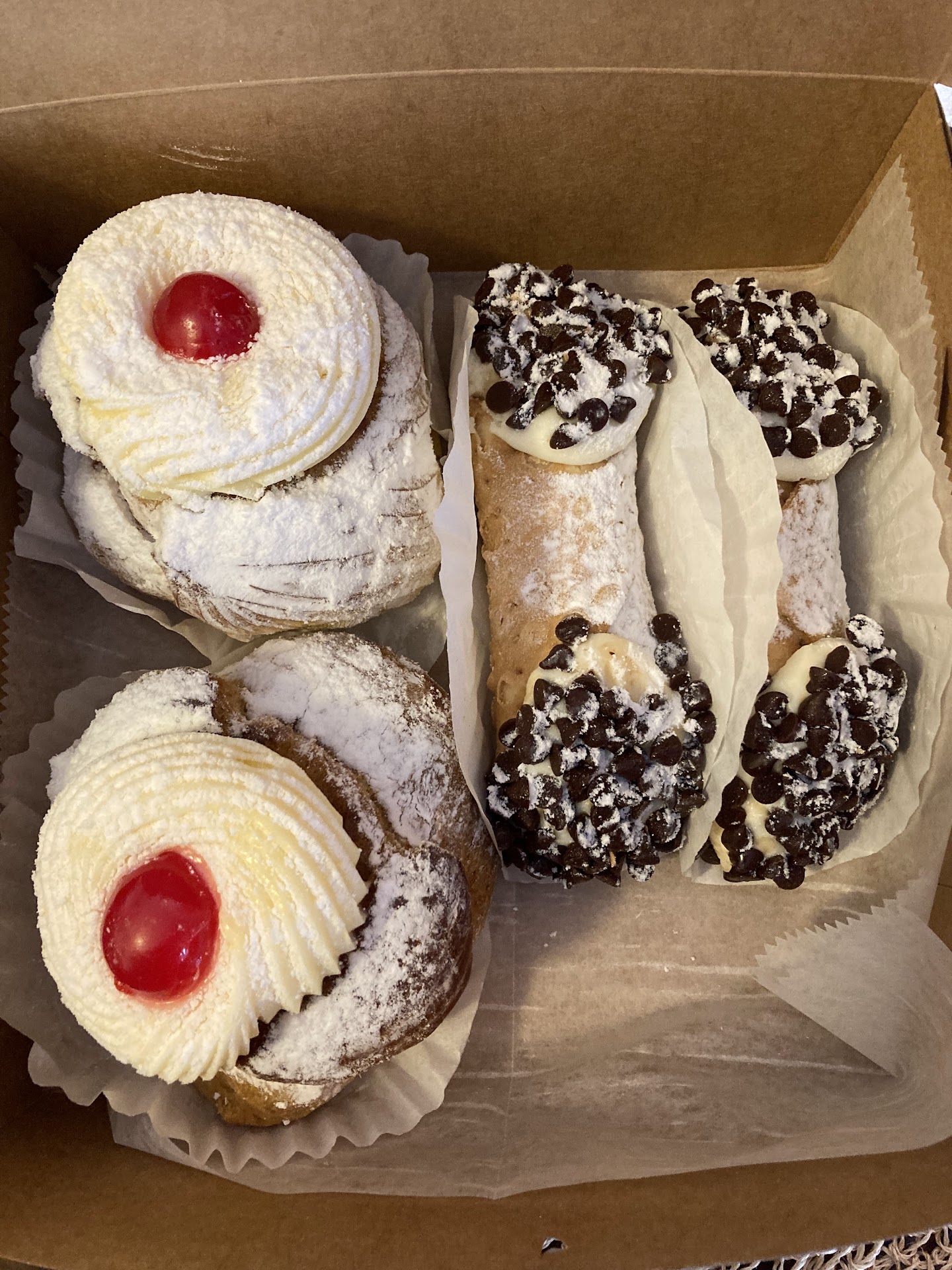 Ā Ā Ā Read moreLet me start off by saying that the zeppoles and pizza chips I bought from here were delicious, and the young lady at the cash register was lovely. However, whoever the cranky older woman was that came out from the back had absolutely NO interpersonal skills! I had ordered 3 dozen SMALL zeppoles (I'm fairly certain I got regular size, unless regular size is the size of a pie!). I asked the young lady if I could have 3-4 empty boxes so that I could further divide them when I got to work. The older woman came around from the back and said in an angry voice that they could not/would not rebox them since I had not ordered them that way. I explained that I simply wanted a few extra boxes to divide the pastries when I got to work. She then said, "Well, you''ll have to pay for them." I told her that I was happy to pay--I just wanted the extra boxes. While I WAS happy to pay for them, you would think they could throw me a few empty boxes since I spent $113. This was my first experience at this bakery. While the products were delicious, the cranky lady left a bad taste in my mouth. I'll go to one of the other many bakeries in our area from here on who provide friendly...