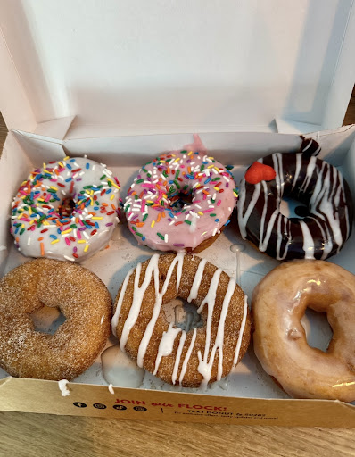 Small establishment. Very crowded. Small area with no organization to it . Order online. Your wait will be very very very long if you order in person. Pay attention to your order and how long you have been waiting, several people were missing parts of their orders or orders all together. We personally never received our coffee drinks and had to remind them. There is an area to watch them make donuts for the kids. Itās a hot mess with frosting and toppings everywhere. The gap between the watch counter and the glass is big enough to get your hand through so kids just stick their hands through which is gross. Donuts are fries right there in person and decorated which is cool, but the results are a hot mess. The donuts themselves are only decent because they are warm, but the frosting melts off leaving a puddle of it everywhere and hardly any on the donut. The box they come in is a hot mess too because the employees drip frosting and toppings everywhere. The donuts are very heavy with grease and are made to eat only warmed up. It they cool completely they become grease filled and waxy when eaten. Coffee/espresso is super bitter ( even though the drinks are made fresh right there). The peanut butter fluff donut does not taste like peanut butter at all. The maple donut had great flavor. Over all you are over paying for basic greasy donuts that have over rated toppings. There are no flavored donuts just chocolate and vanilla. Everything else...