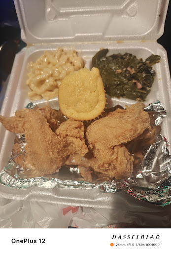 Ā Ā Ā Read moreI really wanted to like this place, but the truth is I hadn't eaten all day which means I wouldn't have been hard to please. I went in around 7:pm and ordered the oxtails staff was friendly as a gentleman begins to write down my order the lady sitting at the table mentioned that when she called in to order she asked for oxtails and they said that they were all out at that point the gentleman asked the people in the kitchen if they were all out in fact they were so I had to go with the fried chicken wings which I ordered two but for some reason they gave me a four which was double the cost I guess they were in a rush because I can see the slight effort however the wings were not fried all the way through undercooked and I waited at least 20 minutes although the mac and cheese wasn't baked in the oven it was pretty good to be made on stove top šš¼ collard greens were as good as collard greens can be considering I love mustard and turnip but nobody wants to wash those lol sweet potatoes were disrespectful to my time and money the potatoes were hard they hadn't even softened up let alone allowed the potato to be saturated with the sugar cinnamon or anything I threw them away after one bite the chicken could have had a little bit more seasoning as well some sazon or just plain old Lawry's and they need to put some holes in the boxes because when you order fried chicken and close it up it makes the breading moist... I see the effort but you need to tighten up the kitchen... If you can't make sweet potatoes just don't make them bottom line you cannot Rush good food I rather wait longer than wait and be pissed off. And the banana pudding fluff was just a lot of fluff not much consistency they did have banana pudding cake but I didn't try it because I expected traditional banana pudding it was not. I will come back to try the oxtails and...