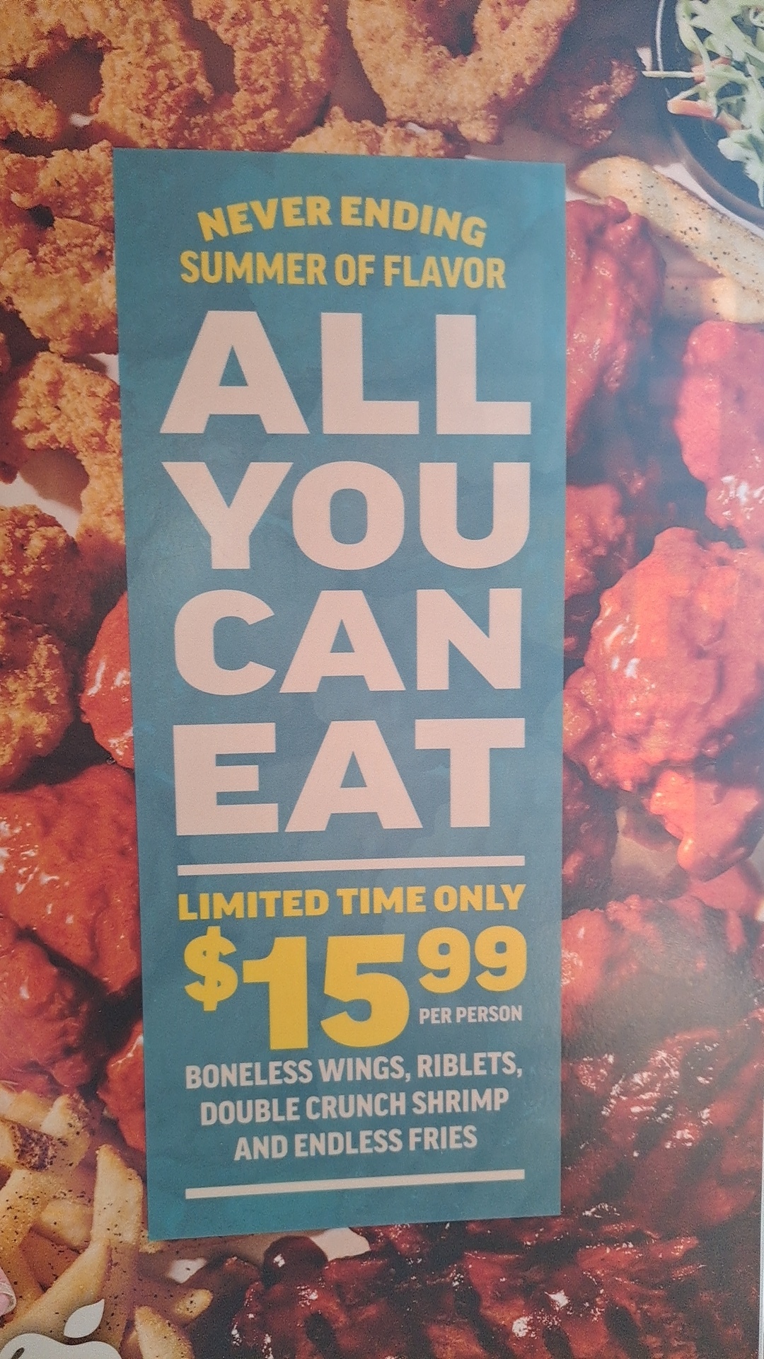 Not sure what is going on with this place? It could be great! If they just had properly trained staff!!! First red flag. Walked into a half full restaurant. Hostess tells us. It was a 20 minute wait. So we waited. Then watched as the hostess had to bus tables. The entire time we waited. Watched a waitress stand next to the kitchen door way near the bar. NOT DOING ANYTHING! She could have been at least bussing the tables. So the Hostess could work on seating customers. In our time waiting we witnessed at least 5 groups of customers walk out! As the wait times continued to increase. Why? No one else had been seated. So finally we get our table. After the 20 minute wait. A table that was open and empty. Our entire wait time. We get seated. Then nothing. Another 20 minutes goes by. Before we even have a waiter come to our table for drinks. Then when he comes back. He brings me a soda. That had no flavoring at all! Just carbonated water. Wait 15 more minutes for him to even come back. He then informs me. They are out of their Applebee's signature mountain dew flavor. So i switched soda. Fine. Next come to our food. We had been in 2 weeks prior. Had the burgers. They were cooked perfectly. Not this time around. They came out like hockey pucks. Took a bite. We could not eat them. Waiter never came back to check on us! So my wife. Had to get up and find the manager. Because our waiter was no where to be found. The manager ended up cooking our burgers. And bringing them out to us. After about 10 minutes. Our waiter reappeared. Not even knowing about our issue! The manager ended up taking care of food bill. But we feel had the staff did their JOBS properly. This would have never happened. Our total time being there. Was almost at 2 hours! For just 2 burgers. And appetizer and 2 drinks. This should be unacceptable! They need bus staffing! To focus on bussing the tables! And cleaning the restrooms! I've seen cleaner restrooms at a truck stop! We truly appreciate having an Applebee's in our town! We just would like them to service the customers more quickly and be more friendly! And lastly. How about turning on the outside lightning and signs outside at night time! To let your customers know your open and that the parking lot is safely lit! Please do better! We want you...