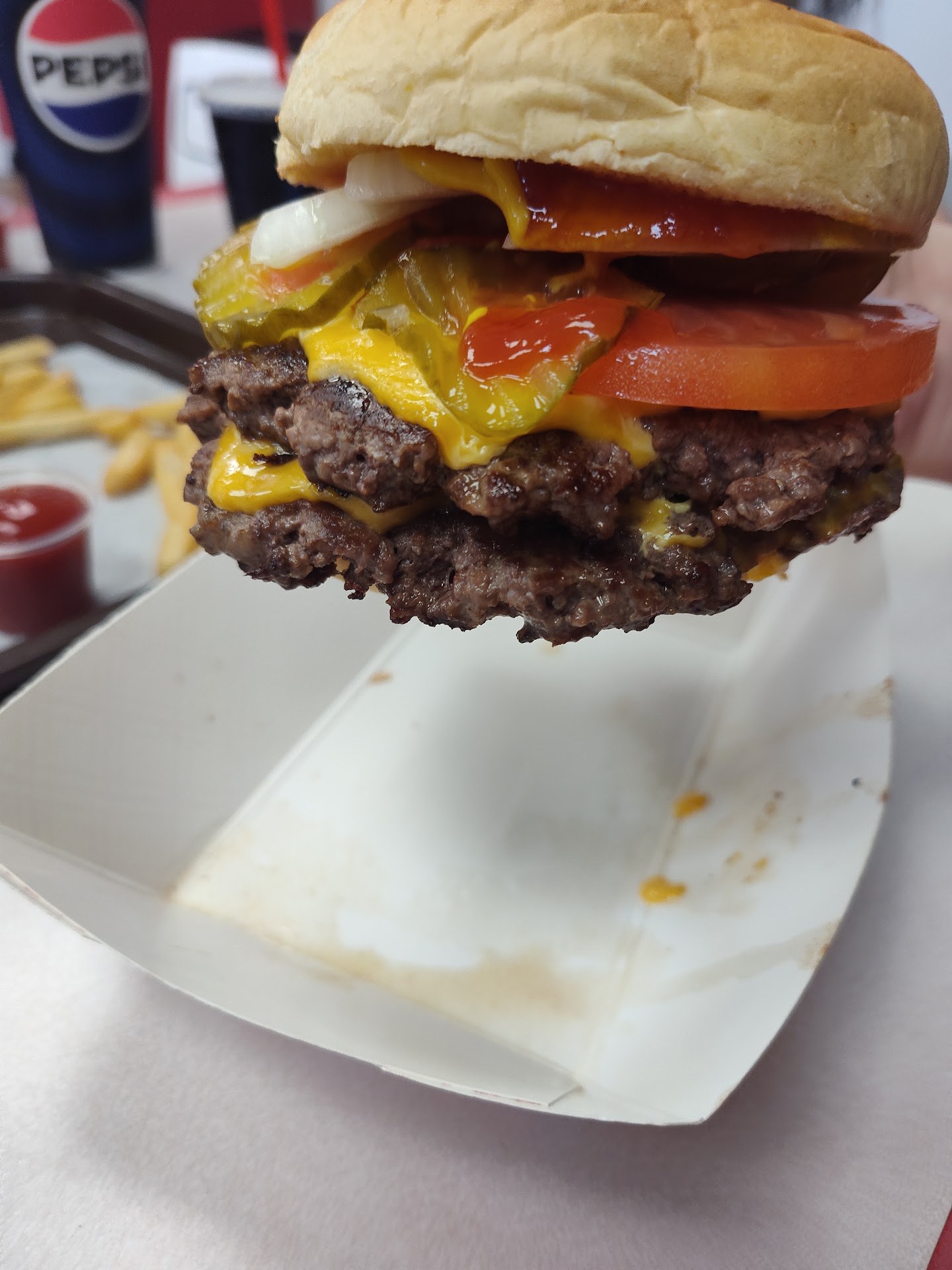 I went at around 1:30 on a weekday and most of the tables were filled, service was quick and easy. Overall, it was a good experience, and I would definitely come back to try something new along with some fries,...