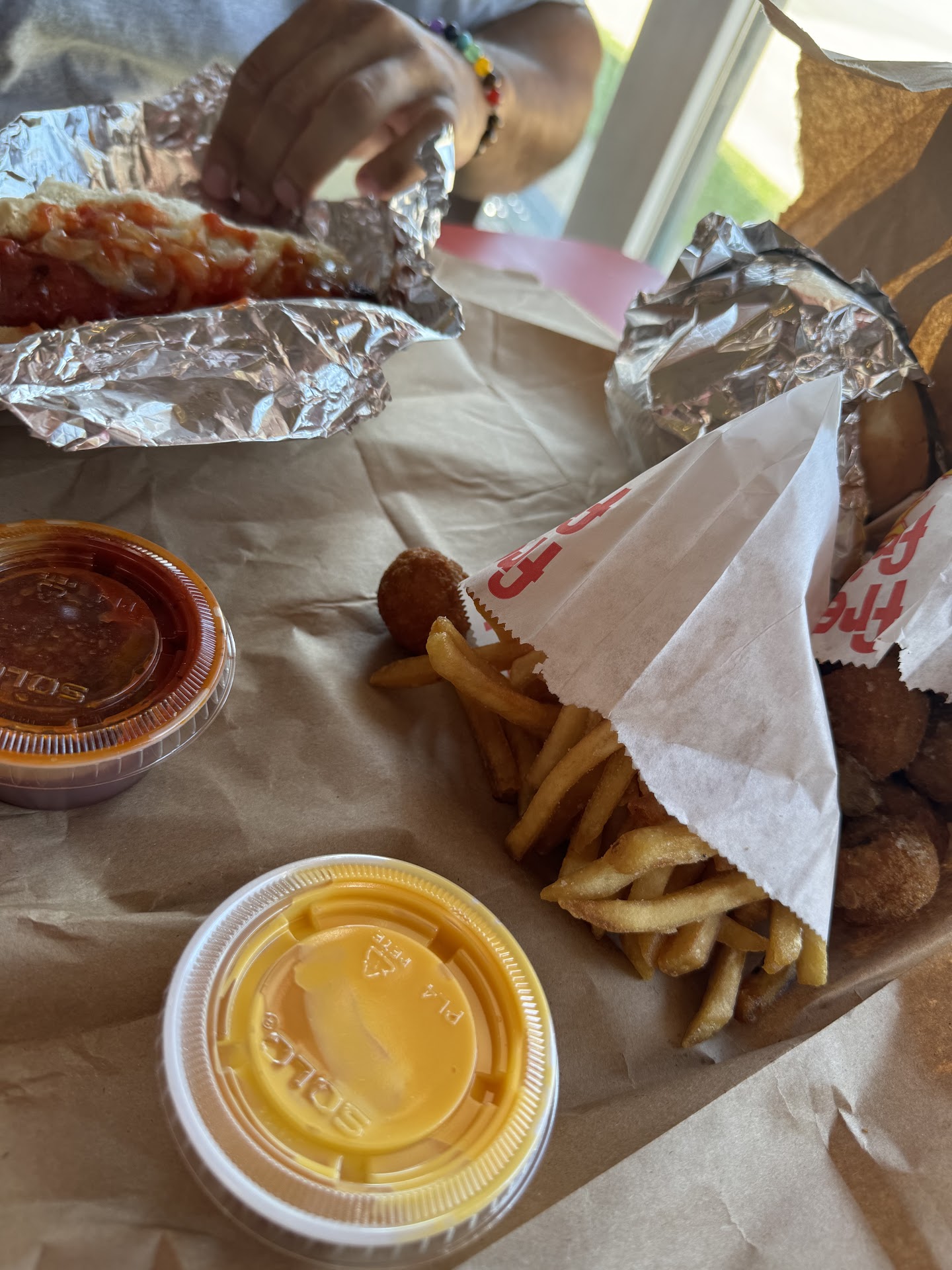 Let me start by saying I’m a Chicago influencer with over 150k followers on social media. Came here bc we were in the area. Ordered a burger, hotdog, cheese fries, and fried mushrooms. No flavor in anything. Burger was flavorless & topped with salad from the bag instead of fresh veggies- fresh lettuce, tomatoes, & onions weren’t even an option. Fries were burnt. Hotdog isn’t very complicated yet it arrived soggy- we were dine in. Mushrooms were decent. Dining area was dirty, almost every table was dirty, including seats. We stepped outside to eat at the outdoor tables in front- and staff came out smoking cigarettes where we are eating. Instead of stepping to the side of the building and having a little decency for customers who are trying to enjoy their food without cigarette smoke being blown in their face. Owner walked in and out- smiled at him both times while he ignored our presence & gave us dirty looks- in an empty restaurant. How odd & awkward. It was giving this restaurants is for whites vibes. That alone should’ve told us to leave but we already paid for our food. Told the person who took our order we were dining in & and they still packed our order to-go while just throwing it in the bag without care like we were animals. After seeing the other reviews, I see these are common occurrences. Update: puked about 10 mins after we left. 0/10 do...