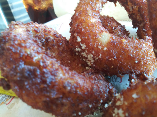 Each or the burgers came well-done and the onion rings had been dropped (deep fried) more than once as the coating was closer to being burnt that golden brown and the onion inside was... Tired.