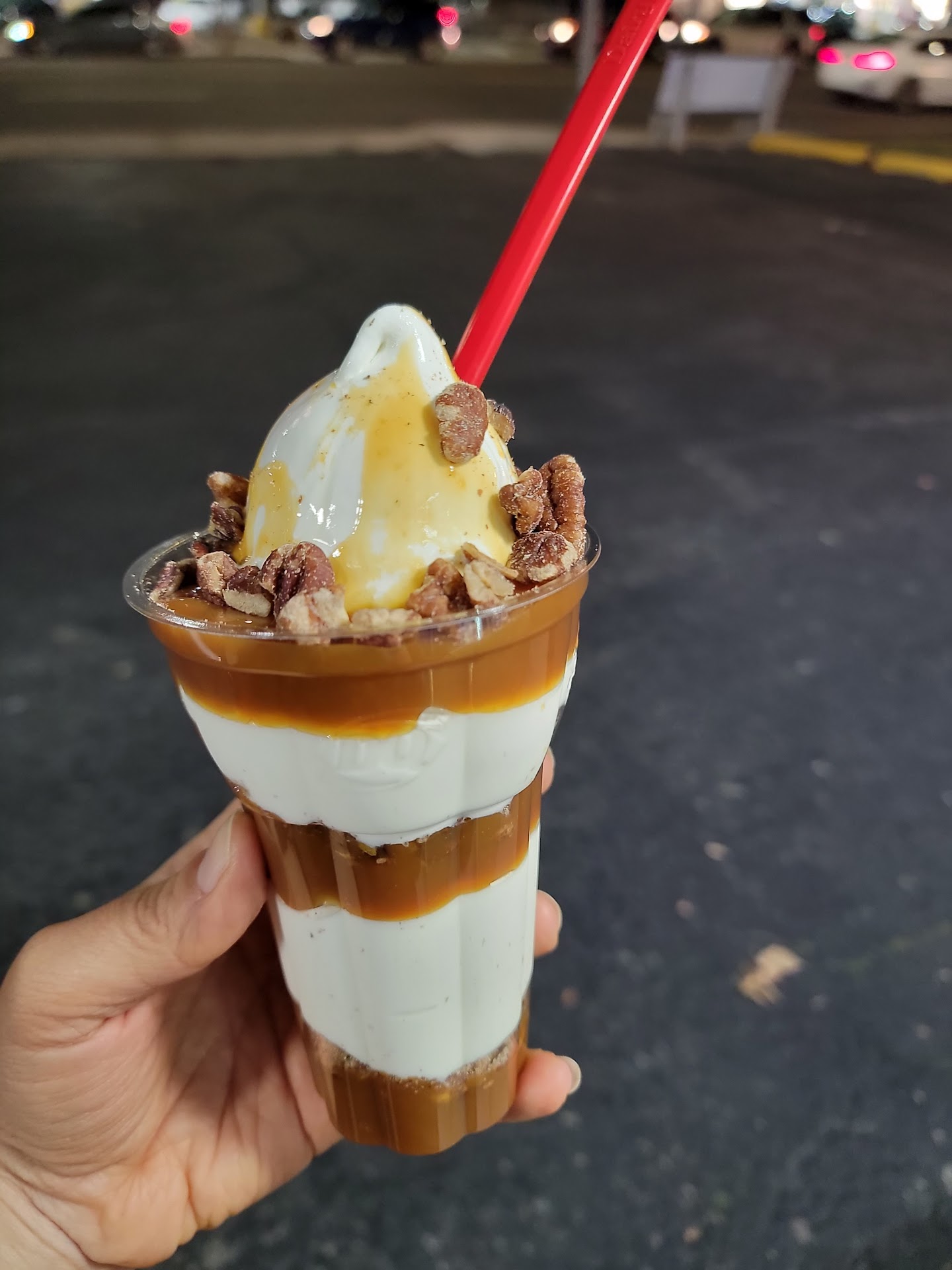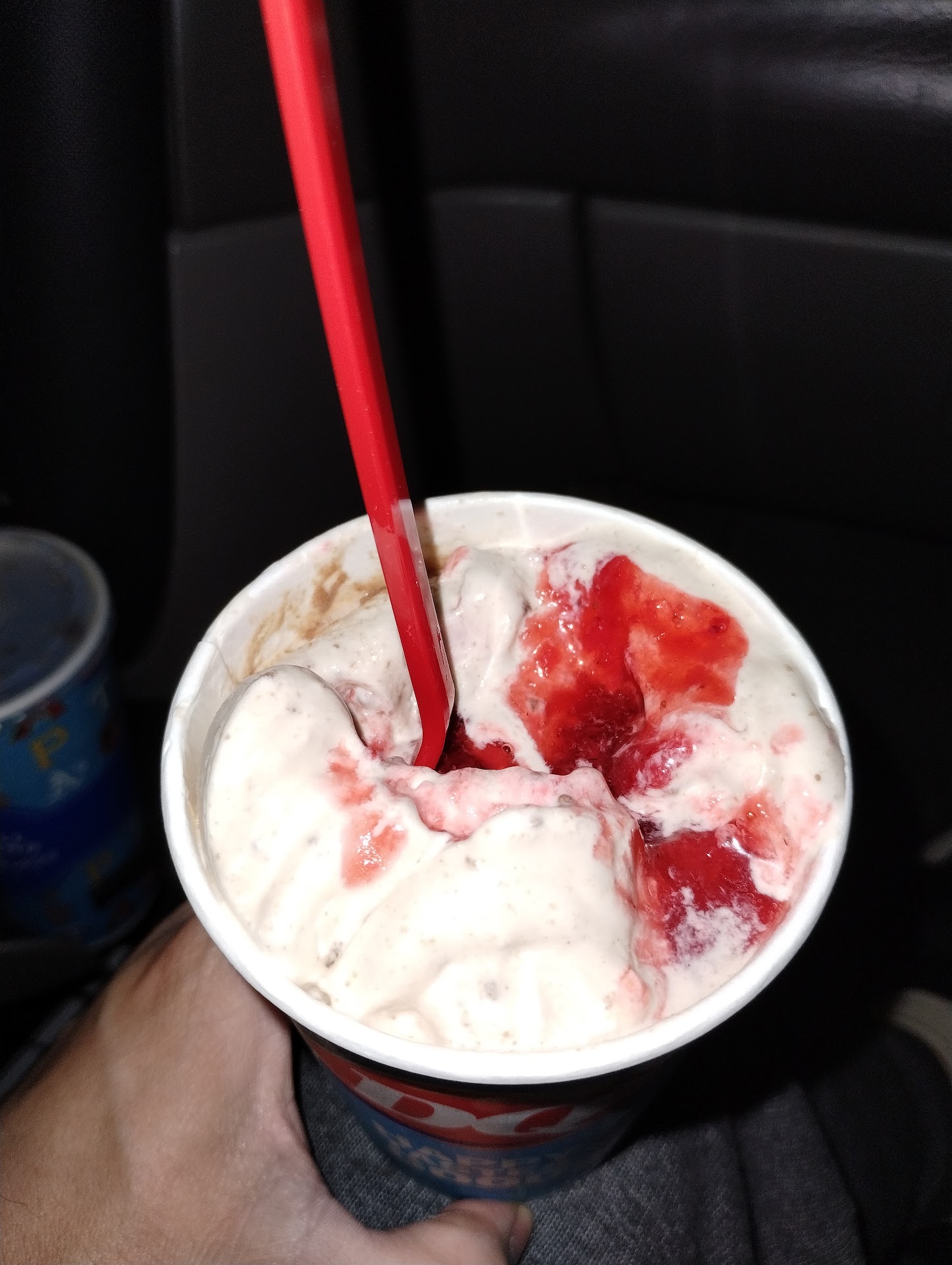 I left my dog in the car so I could hop inside (I'm currently in crutches) 𩼠and after I ordered, I realized they had a drive thru šOn the subject of cleanliness, I felt the place was pretty clean. It actually smelled like some kind of cleaner inside. They had a wide variety of ice cream cakes that I definitely want to go back and check out. I ordered the Royal New York Cheesecake Blizzard. It had chewy pieces of cake, strawberry filling in the middle, and some kind of graham cracker sprinkle in there. I should've gotten the large, especially since my sister was paying. š Oh, well, next...