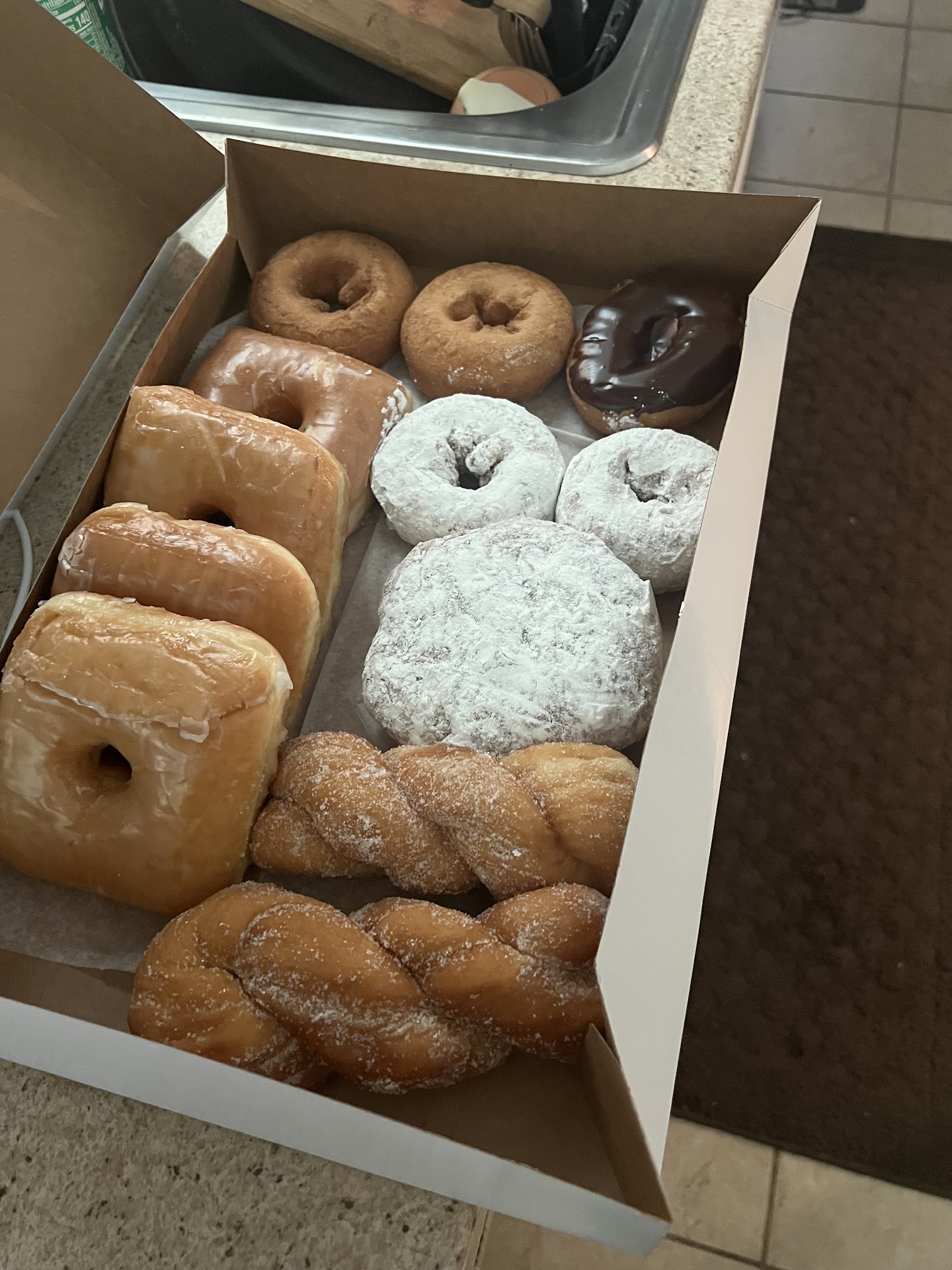 Ā Ā Ā Read moreI love their donuts. 5 stars. Absolutely the best around. 6. They're the biggest donuts I've had in my life! 7 stars. Very thick, well cooked, not oily at all. 8 stars. However, their frosting stays wet for days, never dries and this is messy with kids(and myself). -1=7 stars... they also sell out way too soon before they close at 4pm everyday. -1star =6. many times I go by and they're closed early because they ran out. -1 = 5 stars. They need a 2nd bigger location where they can sell a few other things or perhaps start a lunch menu to help pull in people after 10am. Just make it very good soup n sandwiches and stay open till 9pm. But in a better location. Or improve the location u have. There's no drive up and the doors are not disabled ready and are very hard to open on crutch/cane or on a walker/wheelchair. -1 star=4 stars. Very difficult to get inside on my own. Soi mant great things, but also enough not so good.. but...i will go outb off my way to just get their fluffy donuts. The fluffy fried donut is so very good...