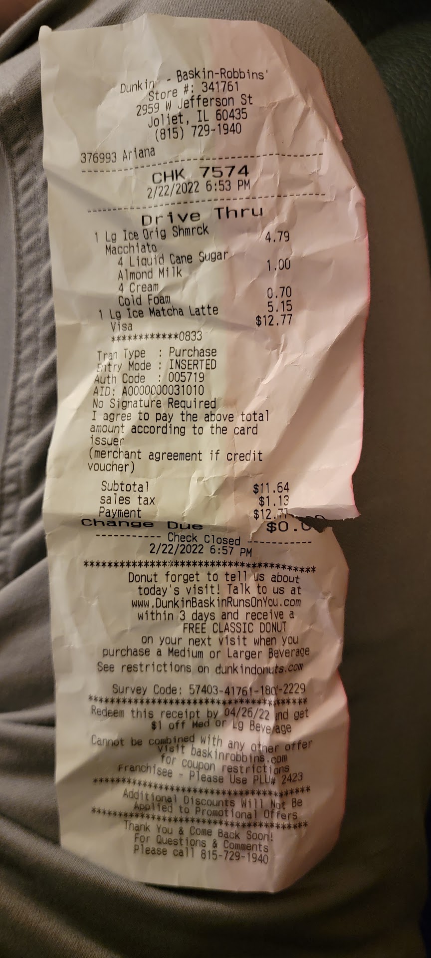 Read moreI would never go to this Dunkin again in my life, a bunch of young untrained ghetto kids. I use to love this DD. If I could give it 0 stars I would. I went and places an online order, coffee had a weired taste i told the young worker, she looked at me like she did not want to take it back to remake it she said its nothing wrong she made it the way you asked. I said its the coffe it tasted weired after about 3min of back and fourth she finally took the cup, i told her if i have a problem why the back and forth with customer. She remade drink out of same batch it taste worse i told her she got smart and ignorant called to talk to a manager all the kids that work there playing on the phone I just over it...