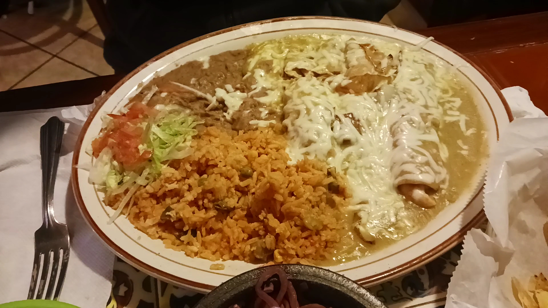 We found the food was delicious, we just felt out of place. We were the only Gringos in there on a busy Monday lunch crowd. The waitress wasn't too personable, she dropped off the menus and was back a minute later to take our order, we hadn't even opened it yet. She seemed upset and also overwhelmed. There was several tables that were stacked with dirty plates when we arrived and we were forced to sit at the community table, which wasn't a big deal.