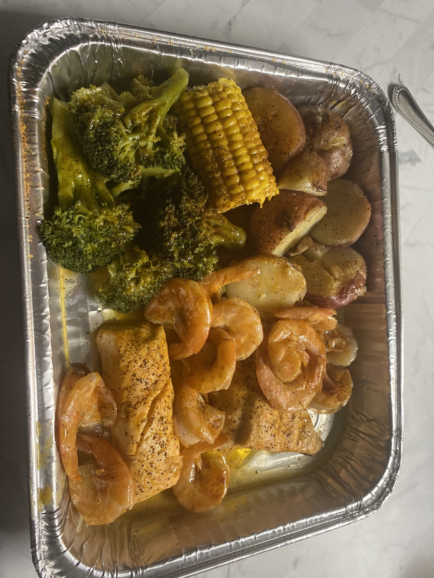 Read moreI would like to start out by saying, everyone was very nice and helpful. Grapes and cakes are delish.. from Cake factory in Alsip, the seafood all in all is ok. Crab legs were good, veggies delish, shrimp overcooked, crawfish disgusting and definitely previously frozen, so i would suggest doing research on crawfish before serving again. Seasoning is very salty. I would suggest using liquid crab boil for the Cajun seasoning alot better flavor for the seafood. I would definitely like to see improvement. Nice portions...