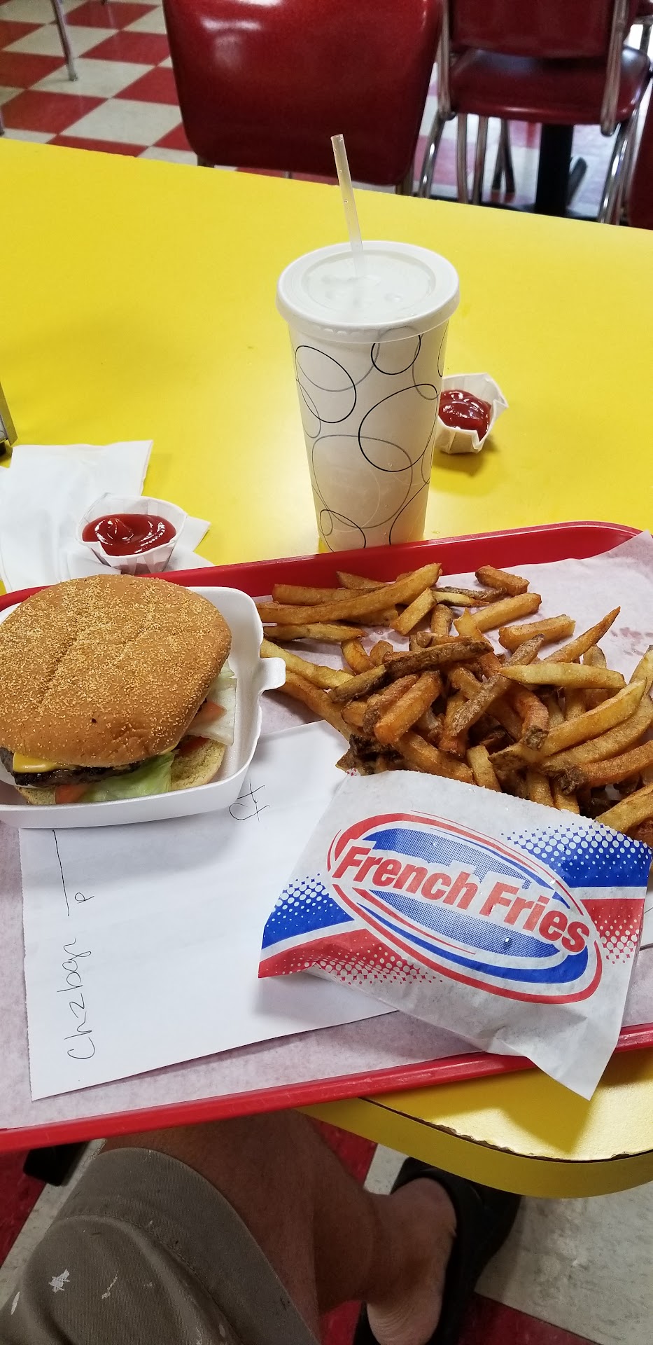 Read moreWe stopped in on a Monday around 5:30 pm. This place was jumping. It's kind of out of the way. I've lived here for about 8 years and I didn't know it was there until I heard some buzz on social media. We both ordered smash burgers, diet Dr. Pepper, and 1 order of fries, and one order of onion rings. Also got a cup of soup to try because I'm all about the cream of chicken soup on a weekday. First, I'm giving bonus points for serving diet Dr. Pepper. This is a unicorn. If you know, you know. The smash burgers I was expecting to like, but I really LOVED them. I think they are back there actually smashing fresh beef. It tasted so fresh and juicy. If these are frozen, then they completely fooled me. They are so tasty. It was perfect, from the bun to the pickle, which are thick and crispy unlike the emaciated pickles from a typical fast food place. Also, I think they are cutting real French fries because those too tasted fresh. The portion of fries are enormous. You can share a large with two people. I don't think they are doing the double fry because they are a bit limp but they are very good. The onion rings are crispy breaded and that's my jam. I loathe a battered onion. They are big crispy deliciousness. The soup was average. It was good, not great. It will definitely hit the spot if you have the hankering for some cream of chicken soup, but I have had better. Overall, it was great. I'll definitely go back for a smashburger. I heard they may be a limited time. I sure hope not because they are probably the best...