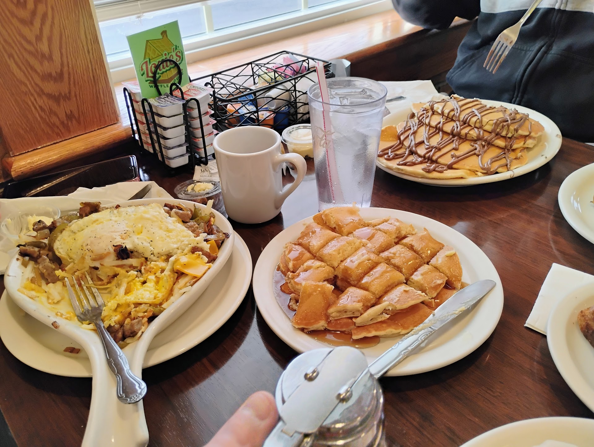 Read moreI’m usually never one to broadcast my bad experiences but Louie’s Waffle House you are TERRIBLE for the way you handled me and my family today!! My sister had hair, not one, not two, but MULTIPLE pieces of hair mixed into the cheese in her skillet. When we asked for a manager to the table he told us that he’s busy with Togo orders and can’t come to us at the moment. We sat for another 40 minutes and the manager still hadn’t come talked to us, instead on the way out the manager Michael told us to talk to him as he was on the line preparing food. My brother told him he doesn’t want to talk to him over food, he wants him to step to the side. The manager refused and became combative which of course started an argument. My brother constantly told him there’s hair in the food and it’s terrible service for you as a manager to not come rectify this situation. The manager began raising his voice which caused my brother to raise his voice, drawing attention from the whole restaurant. My mom attempted to intervene to just tell the manager that they want to speak about the hair in the food, instead the manager told us to “pay and get out”. After minutes of arguing the second manager Nick came out to attempt to calm everyone down but still refused to acknowledge the issue at hand, only tried to tell us to quiet down and that we could come talk about it another day. At no point did either manager or members of the staff (other than our waitress, she helped as much as possible) tend to the fact that we had hair in our food. My family and I have been going to Louis’ since their father owned the place on Jefferson St. and have NEVER experienced service the way we have today. The way they treated us today was UNACCEPTABLE! Whoever got cheese in their meal today fingers crossed you didn’t eat...