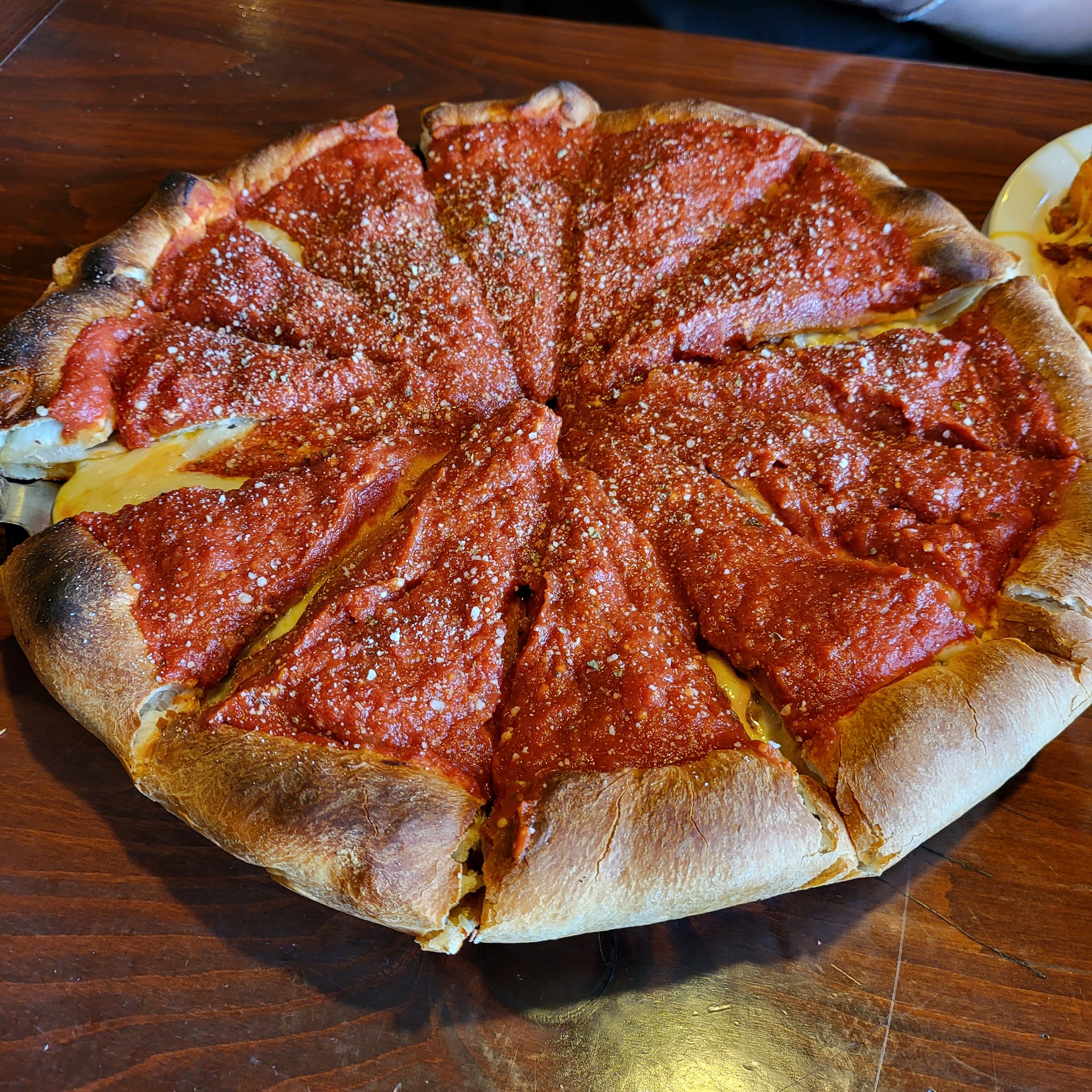 The deep dish, or Stuffed Pizza, was just like if you ordered it at a Chicago restaurant without making the drive. You'll need at least 4 people to finish this. But we were more than happy to enjoy this in the evening.