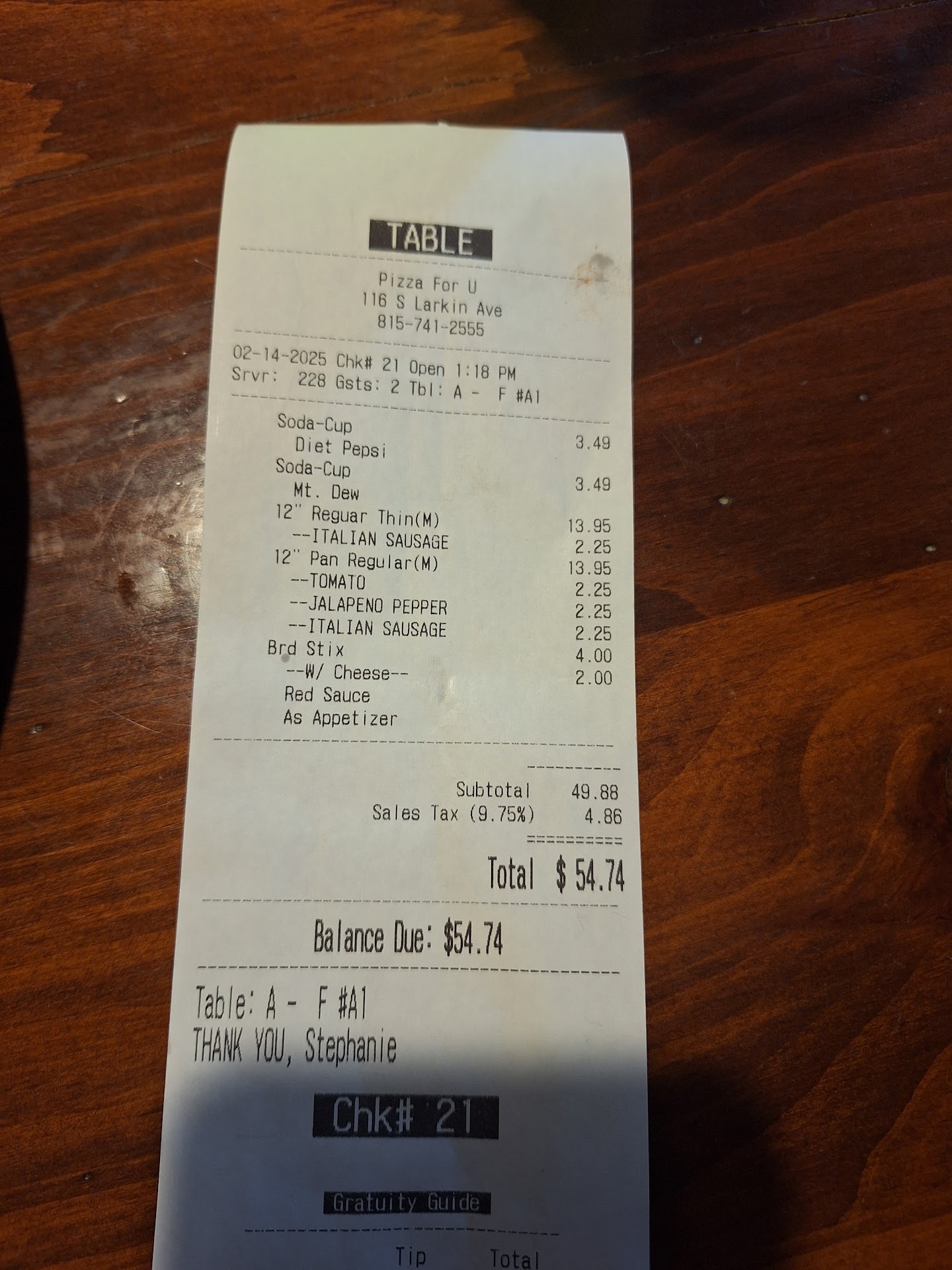What’s worse is this isn’t even our first bad experience. We’ve ordered from them before—the pizza was subpar, and Brian was rude. But we decided to give them another chance, hoping for better this time. Big mistake.
