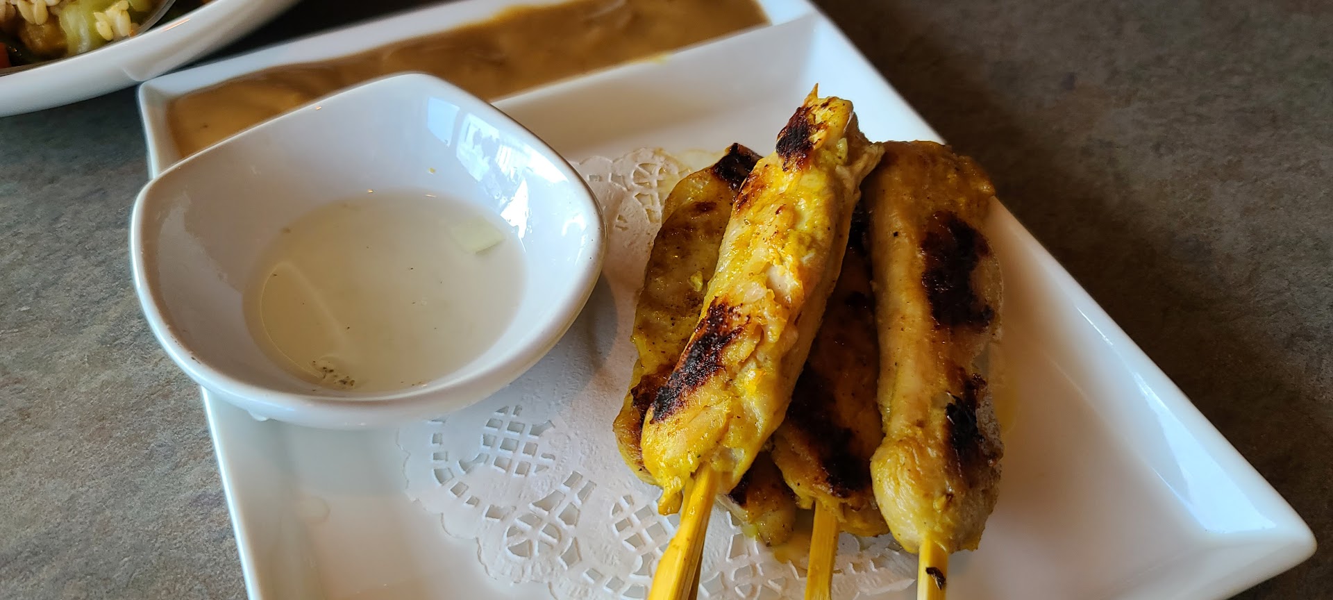 I always forget to take photos of my food. Today was no exception. The chicken satay comes with a totally delicious cucumber salad. I ate all of it before thinking about a photo. Their garden salad is so good. It has cucumbers, carrots, tomatoes and pineapple with a side dish of ranch dressing. The lettuce is super fresh and the serving size is ample.