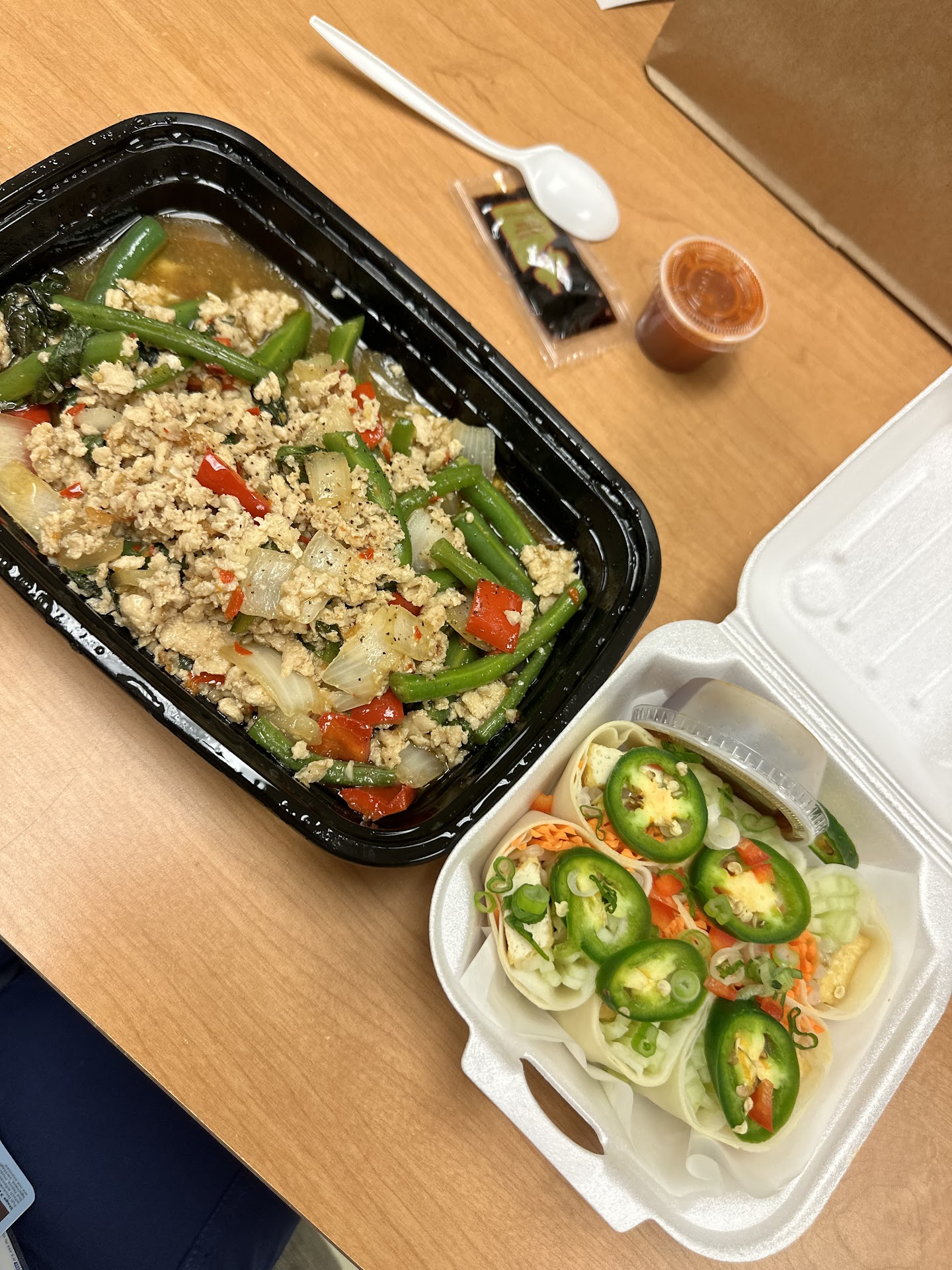 Read moreBuddy and I ordered delivery for this place which is done by Door Dash. Delivery was timely, and even early which is nice. Ordered the spring rolls, chicken rolls, red curry, and kee mao. The appetizers were fine. When they say strip of chicken for the chicken rolls, they mean strips of chicken breast. They were tasty, but not quite what I was expecting. I got red curry which wasn't exactly red; more orange really. The restaurant just seemed to use chili powder instead of chili peppers and powder because this wasn't hot, more sweet than anything from the coconut milk that made the curry incredibly soupy. Had I'd known, or been able to customize through Door Dash to actually make the dish hot. Buddy said the Kee Mao was just ok and at times a little greasy, and much like the curry wish he could have added more heat. He liked the spring rolls though.