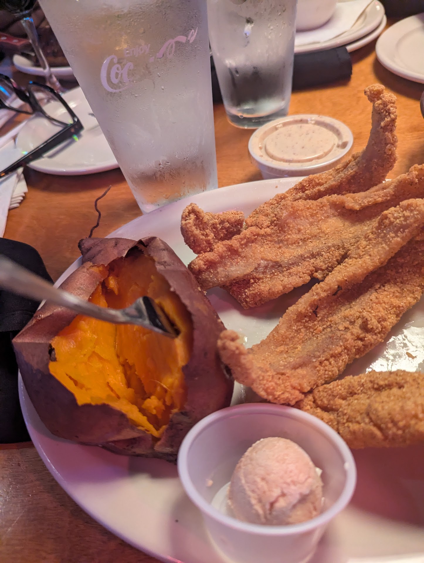 Ā Ā Ā Read moreMade reservations for Mothers Day, and expected a delay. I then received a notification our table was ready yet still had to stand inside the door and wait for an additional 40 minutes. When we were told our table was finally clean, I sat down to it to find napkins, and empty plastic kid cups under the table, and on the booth seat. Still looking forward to having a good time I handed it to the server and proceeded to order. My appetizer .. the grilled shrimp came out not warm, but ICE COLD. I sent it back and received a new one that was satisfactory. I then ordered the equivalent of a Filet Mignon I forget the name they call it. I asked for it to be cooked Medium, and it came out bleeding on my plate, to call it Rare would be KIND.š I sent that back, and was told the manager Caiden would bring it back to me. Well by the time he came back the other 6 ppl with me had finished their whole meal! I said no thank you and Caiden replied, āOk then hand me your plate back.ā Which I happily did as my appetite was ruined. I told the waiter I work in Corporate IT and that I planned on taking necessary action. Caiden ran back to the table quickly this time and said he wanted to give me a $20 coupon for the next time I come back. I said NO THANK YOU, Iāll never go back! I paid my check and left, Iām not looking for discounts. I WANT SERVICE! I WANT WHAT I ORDERED. The people bussing the tables FAILED, Caiden the manager and his lack of experience in customer service FAILED, so did the cooks because if the specialty is meat and they canāt cook it to the right temperature then why are they there??? Donāt...