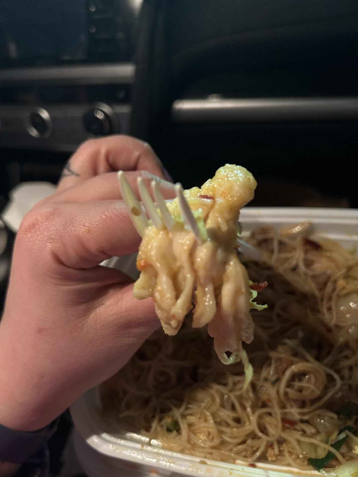 Went to get a quick dinner before going to a concert. Called ahead of time to make sure we got the food quickly but had hoped to dine in. Lady gave us weird flack about our area code being from out of town and realized what all the negative reviews were about when we got there. Half of the restaurant was blocked off for some odd reason, had bathrooms that we could see but weren’t open to public. The whole place just gave me “hiding something” vibes but I was hungry so we gave it a go. I got the Singapore rice noodles and am glad I’m not vegetarian since there’s meat and seafood despite it not being listed anywhere on the menu. The shrimp was fine and the noodles were spicy, but that’s all I can say for them being good. The “chicken” had the texture of a wet sponge and I’m not a fan of beef generally (wouldn’t order for myself, but again, didn’t know). Husband’s dish was fine and the potstickers were good, but generally just bad vibes. Won’t return, do...
