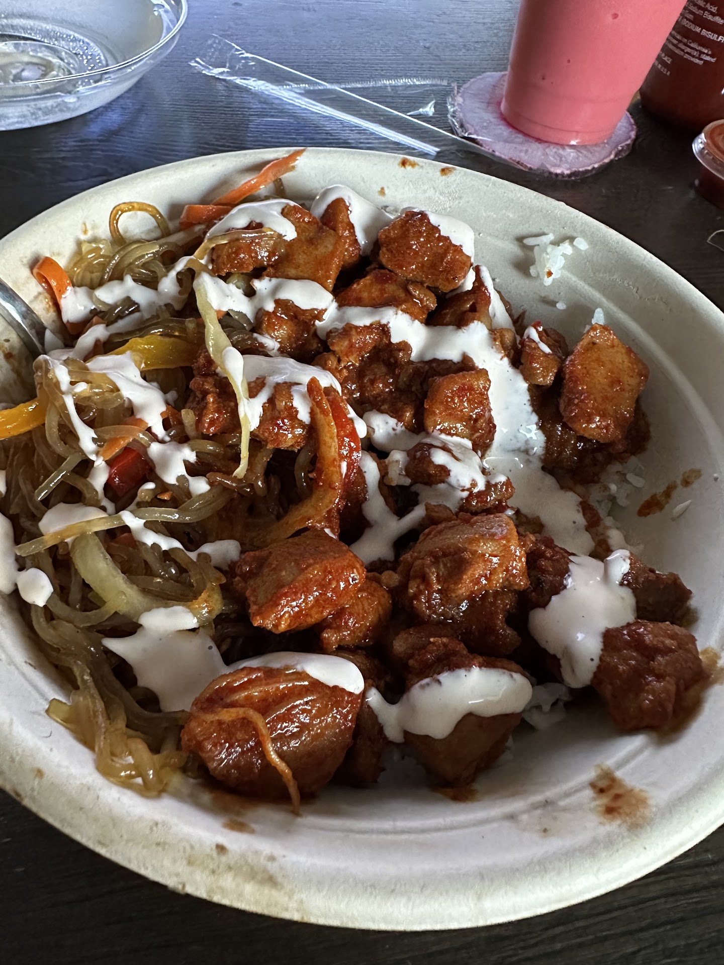 Read moreI must say, this was my first foray into Korean cuisine and I loved it. It was recommended by a friend who normally gets the bowl. He could not say enough about it. The bowl is a health portion of your choice of meat and seasonal vegetables. I got the BBQ plate. Meat on a bed of rice with two sides. There was a really good portion of meat on white rice. The two sides I got were the Korean slaw and something I will misspell. Both were VERY SPICY. I guess Korean food is spicy??? Amazing side spices. The spicy mayo calmed down the spice of the sides and I was able to enjoy it. They offer smoothies, though I did not get one. Staff was friendly and attentive. Especially since I could not pronounce the majority of the items on the menu. There is a decent amount of seating regardless of the time of day. I was there at noon and our party of nine had no troubles finding a spot to...