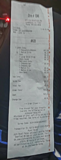 9-2-2025 WORST BURGER KING EVER!!! Don't waste your time. Rudest staff ever. Called 3 times before going to see if they had stuff to make Impossible Whopper, but no one ever answered the phone. Ignores customers waiting at register. The food was cold. The order was wrong. Asked for hamburgers with no onions or ketchup and got cheeseburgers with everything that was NOT supposed to be on it. They forgot the fries. Was charged for large o ion rings and got a small order. Went to register to ask for the fries and was given fries that were undercooked and cold. They don't like making the Impossible Whoppers so they lie and say they don't have the stuff (happened twice) This was my third attempt to get the Impossible Whopper. Went inside to ask if they had the stuff to make it and she smirked as she was turning her head to asked if they had the stuff. The restroom was FILTHY and smelled like dead rats. Made us feel.like we were wasting her time to take the order. Another employee came on shift and sat down to play on her phone. Best part about it was throwing it in the trash.