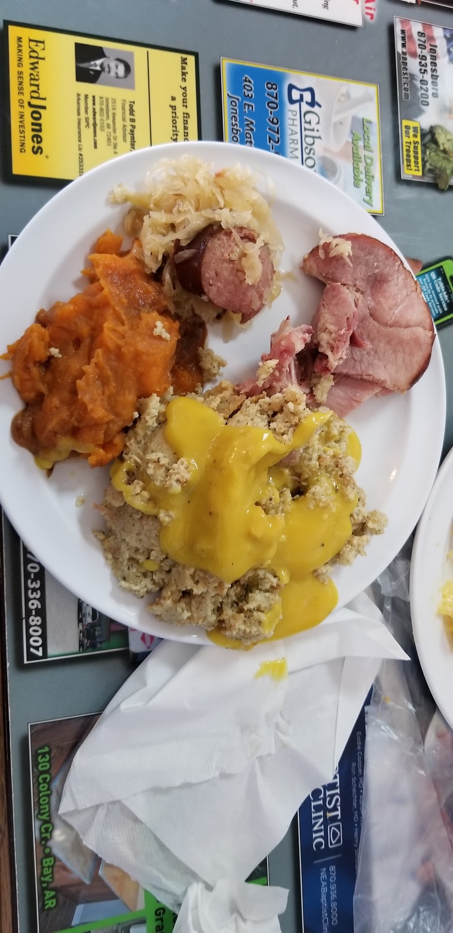 Read moreI'd definitely recommend this place to anyone looking to eat a decent, country-style meal for a relatively affordable price ($8.00 a plate) serving as much as you'd care to eat and a menu that differs depending on the day of the week. My recommended days are Tuesday and Wednesday, serving Chicken Strips and Baked Chicken respectively as their main attractions, among other main dishes mind-you like Salisbury Steak and Chicken & Dumplings. Wednesday's Peanut Butter Pie is to die for as well, so be sure you leave room for desert.