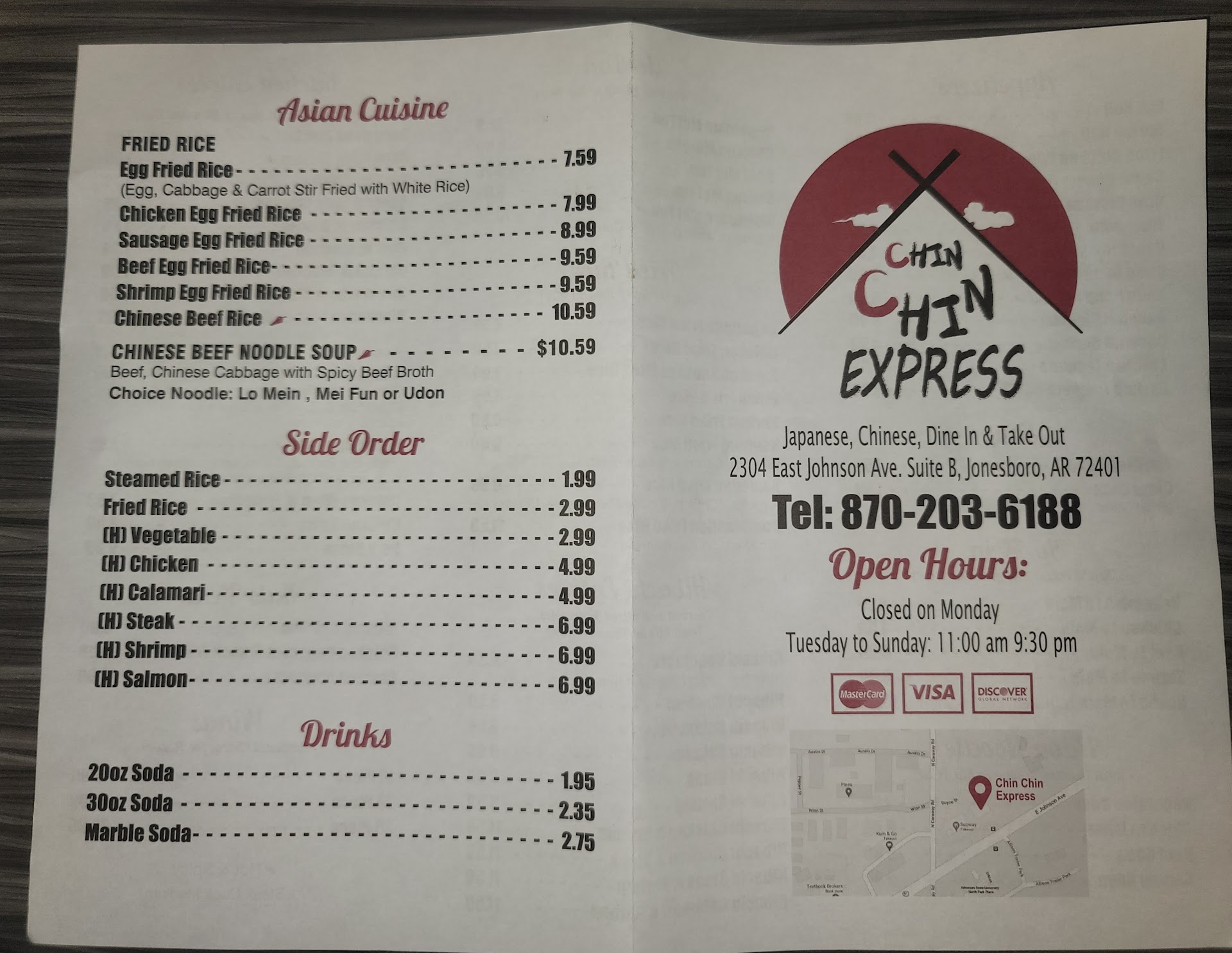 Read moreGreat food with friendly service! Tasty, comfort Chinese food. Egg drop soup, General Tao's, Mongolian Beef, Donuts, egg rolls! I'm not sure about some of the reviews being so negative. This place was some of the best Chinese food we have ever had. Everyone can have an off day, whether it be service or quality. On the other hand, many customers are too hard to please, and their expectations are unrealistic. These complainers are the same people who will pay $10 for a Starbucks (nasty coffee) and brag all day about Lowe's and Publix but never call them out on their lack of service and quality. Give Chin Chin a try. Be polite and respectful. We all have different experiences, but Chin Chin is definitely worth the...