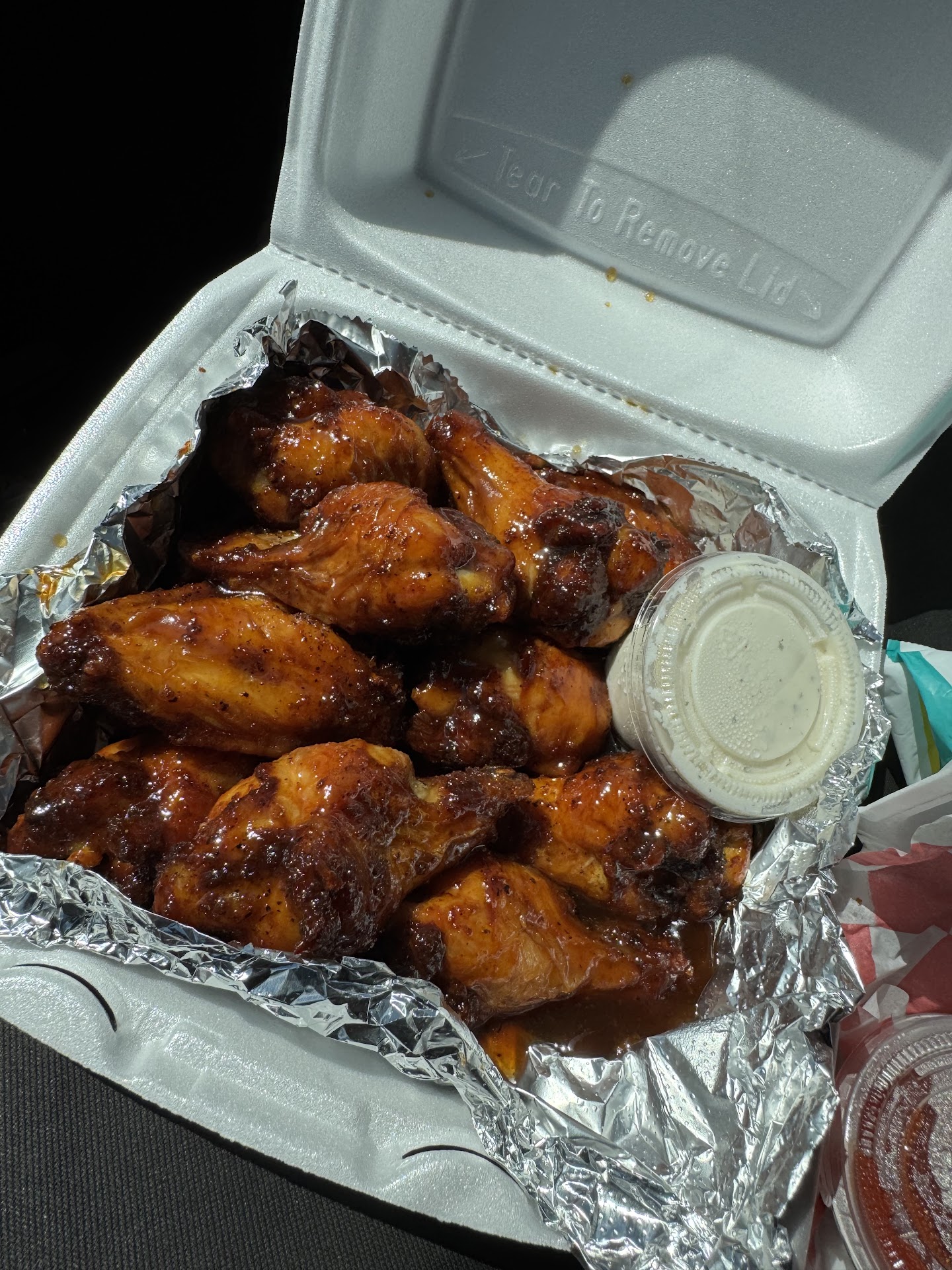 The food here is amazing. I ordered the burger and wings and let me tell you. I bit my fingers eating those wings. I ordered the bourbon street sauce and it was so delicious. I was damn near licking the plate. The burger was seasoned very well. I want to come back today and get more.But I don't want to be a big back. So instead I went to checkers, and got a burger and fries, and let me tell you I was so disappointed. So disappointed, I should've went with my first mind and waited for you guys to open up because let me tell you that checker's burger was just not where it was at it was horrible. So y'all don't be like me. Follow your first mind, go get you...