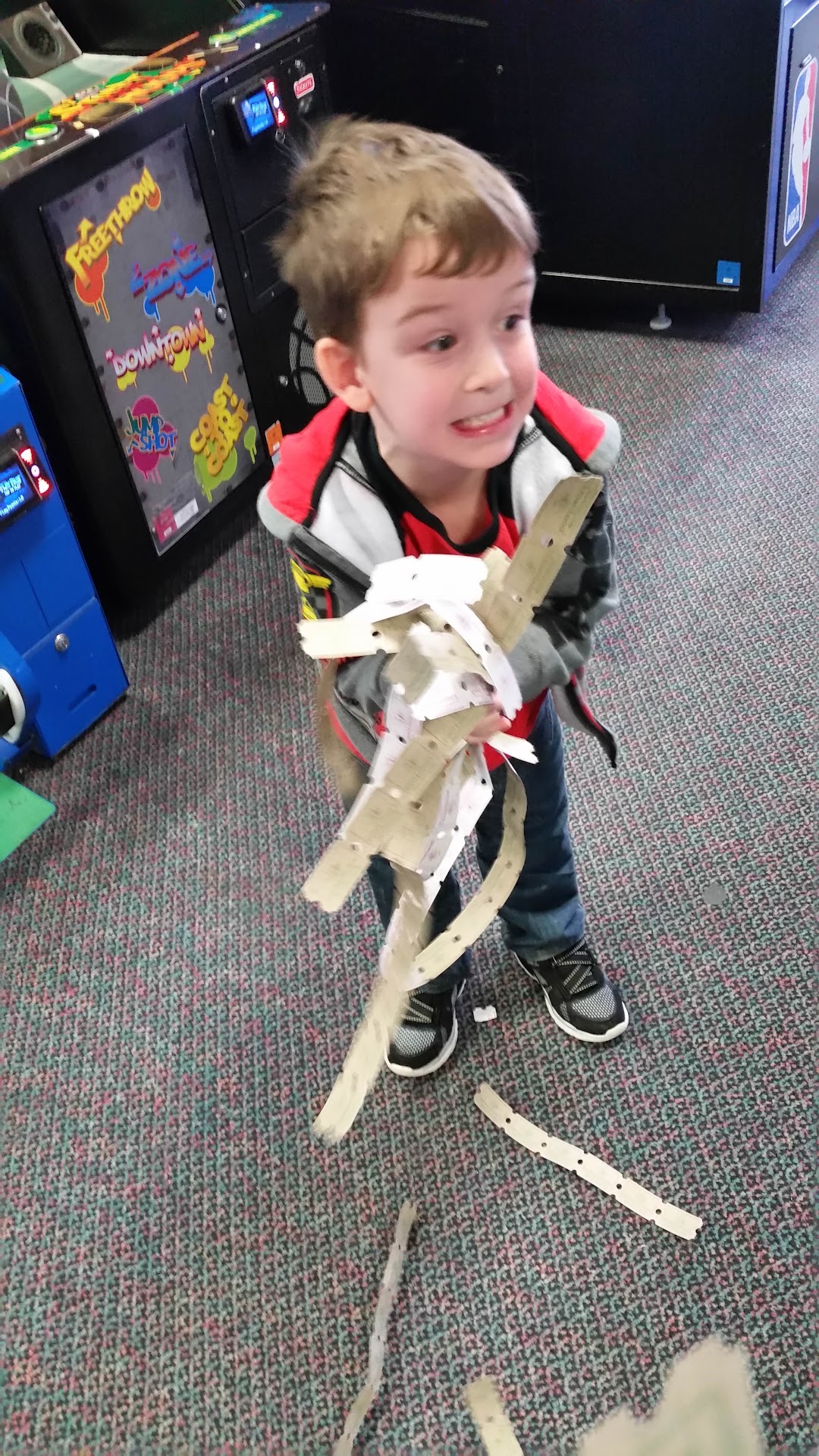 Read moreWe decided to have our twins 3rd birthday here but NEVER AGAIN!! My kids did have fun playing some of the games but when we got there it took over 30 minutes for someone to come out and let us sit down. There was 12 people with us in the party so we were taking up the whole entrance and there was one lady working at the checkout and didn’t even look up to call someone. Yes she was with someone but she could have yelled at someone else to come up there. We ordered 2 XL pizza for our party (size is a joke) they brought it out even though we asked them to wait till we told them to cook it so our kids could play. It was on the table in about 20 minutes. The drinks were WAY overpriced for the size. After eating the pizza we added more time on our card for the kids. About 10 minutes of playing I went to the machine to pause the time so we could do presents for the people In my group that had to leave early. It said it paused but apparently it didn’t. My kids and husband went back to play games and it said it was expired. I went to talk to the manager about it and she acted like I was just trying to get free time. She checked the card and said “see here it shows you didn’t play for 15 minutes” I told her that’s what I am telling you it did not pause my card. She said “what do you want me to do. I can’t give you the time back. I can give you 15 points.” I said just forget it. We will eat our cake then leave. When we were done and went to redeem our tickets it took over 35 minutes with just 1 family in front of us. I was so done at this point. When we were leaving I heard some of the employees greeting people right away and sounding nice and attentive which really made the choice of never going back 100%. I’ll pay extra to go...
