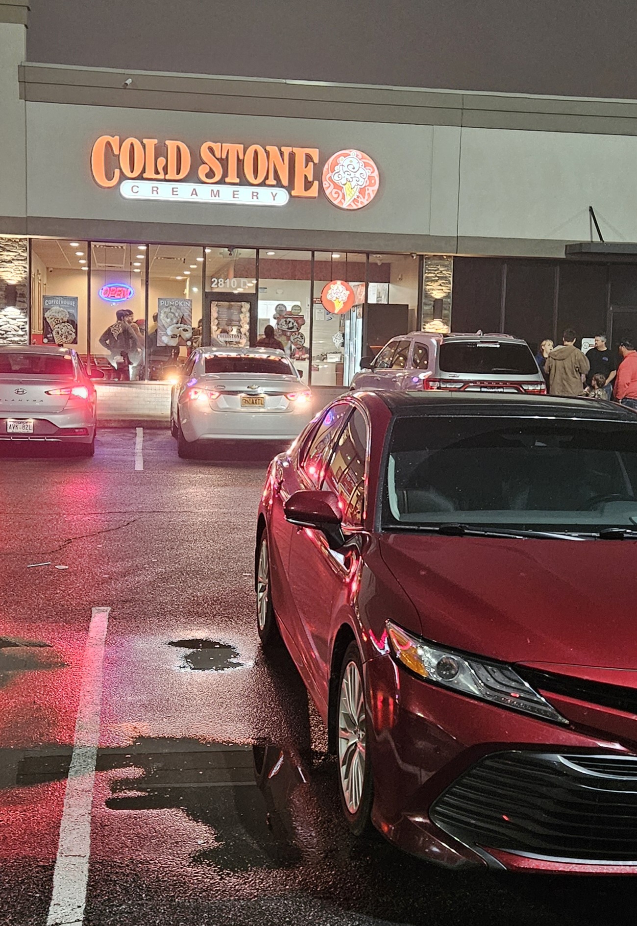We stopped by Cold Stone Creamery for a treat, and the experience was fantastic from the moment we walked in. The employees were incredibly friendly and upbeat, creating a welcoming atmosphere despite how busy it was. When we arrived, the line was all the way to the door, but it moved surprisingly fast. The staff worked quickly and efficiently, and it was clear they knew how to keep things flowing while still giving each customer personal attention.