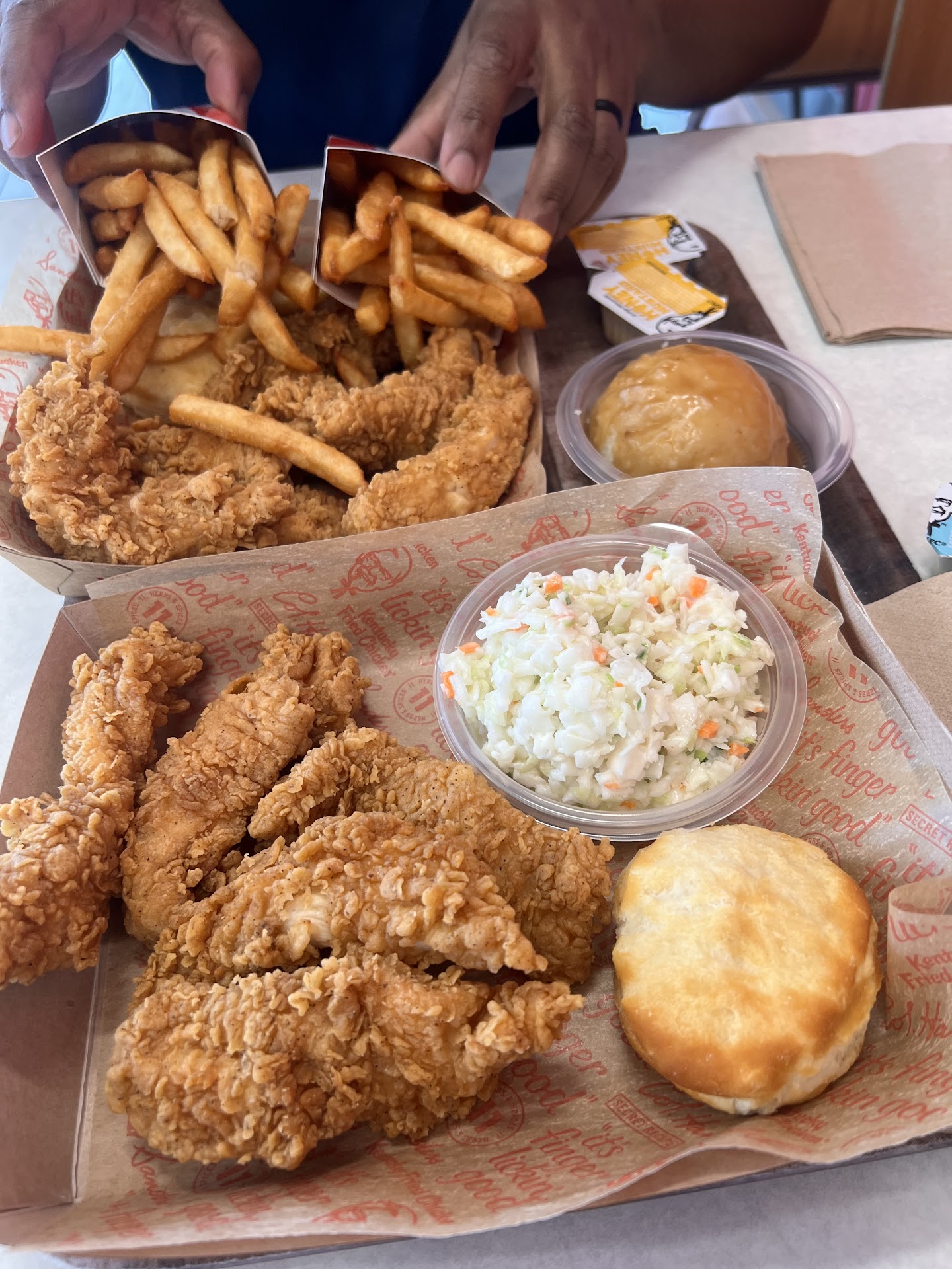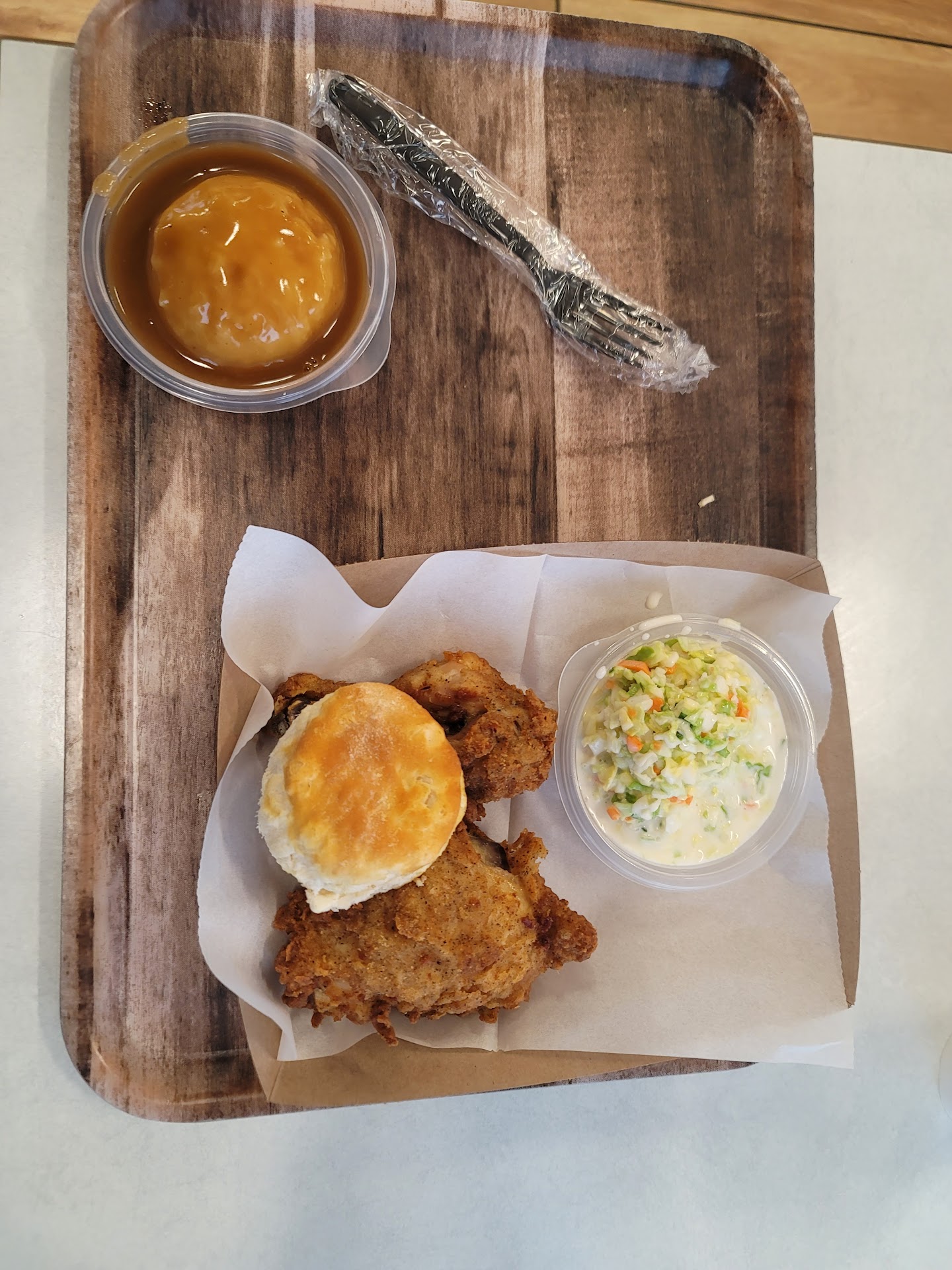 Read moreI ordered a 3-piece combo, original, and I paid extra for white meat. The wing was good but the two breasts were inedible. The meat was tough like shoe leather and after chewing and chewing for nearly two minutes, I ended up spitting it out. I try to eat healthy food, and seldom indulge in fried foods like KFC. This was a treat, and therefore I was very disappointed. The sides were good, as expected (mashed potatoes and slaw), the drive-through was pretty quick, and staff was friendly, which why I gave this restaurant two stars instead of one. Perhaps the chicken was so tough because it wasn't fresh? Maybe sitting under heat lamps all day? Maybe this was an off-day, but with so many other fast food and small restaurants in the vicinity, I would not chose to eat here...