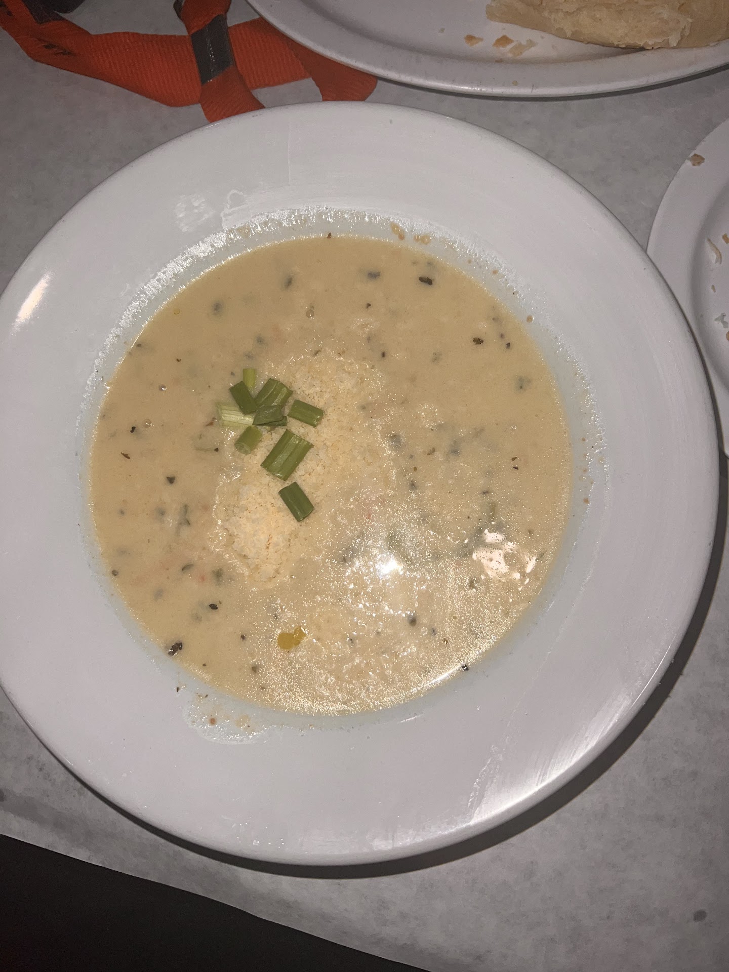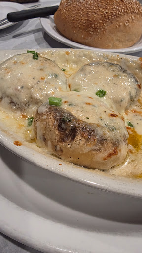 The bread. The bread we were served had sesame seeds and what I assume to be a garlic butter baked on it as well as served alongside. It was so incredibly salty that we peeled the crust of the bread away to eat the inside only. The additional garlic butter was just as salty. 2/10. The appetizer. It was okay, it had lots of cheese which some people like. 6/10 Our entree’s. The grilled chicken cannolleni(sp) was interesting. I didn’t care for it but it makes me think they do make their sauce in house cause there was plenty of nutmeg in their Alfredo sauce. There were 4 tiny slices of mushroom on top. The waitress asked me if mushrooms were ok and I said yes but LOL, I mean there really wasn’t that many to warrant the question. Idk yall, I’ve lived in Atlanta, Orlando, Tampa and have tried many unique American Italian twists but this was something else. I ate half of the dish and the last bite I bit into straight herbs/spices and decided that was enough 5/10. Our waitress was nice but when it was time to pay she disappeared. My spouse went up to the older lady hostess who said with an attitude (that she really didn’t need to have) that he needed to pay at the table. All well and good but our waitress was MIA. Now, at this point our child was tired and crying so we wanted to leave without disrupting others but unfortunately we had to continue to wait. This review has nothing to do with our waitress at all. I get that she has other tables and responsibilities and she did apologize for being gone but someone could have assisted us with cashing out and definitely without the attitude because my husband only asked if he could pay there. It’s poor experiences like this that warrant a review because there’s no way I’ll spend $50 for 2 meals and an appetizer at this...