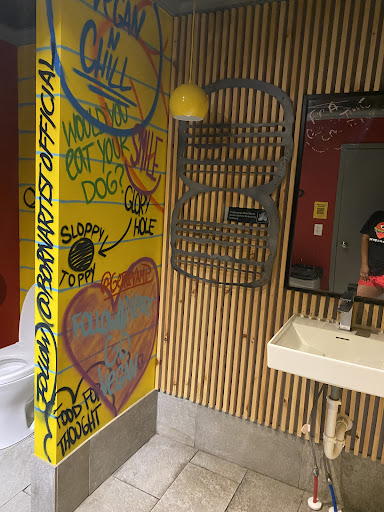 Read moreHonestly the cashier saved this from being a 1 star review. I was so excited to try Slutty Vegan in person after being gifted plenty of gear and even having my husband bring some back to San Diego on a flight. The food was underwhelming though. It actually tasted better last year when I got it after a 5 hour flight. The restaurant itself needed a good scrub. The walls looked gross with some sort of dust build up and the tables all needed a good wipe down. I won’t even start on the bathroom and the state of the public spaces causes my mind to wander about how the private places look. Anywho, the cashier was really nice and was the redeeming factor for this review. She made a joke about how she would have given us the proper slutty welcome but we had a youngin’ with us so she held back. I was so sad that the food was disappointing because I ordered a decent amount of food too and none of it hit how I wanted it to. My husband said maybe a different location would be better but I wouldn’t visit any more Slutty Vegan locations. I’d rather spend $50 on groceries and make my own food for what it’s worth because a box of morning star farms chicken pattys would taste the same and I could add more toppings and not be eating some sad looking sandwich. I honestly cant even rock my swag with the same enthusiasm as before....