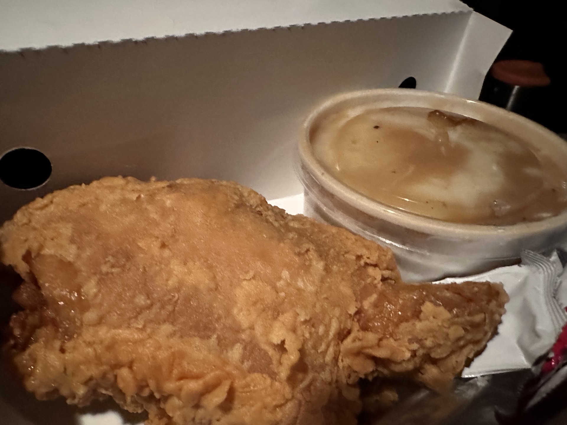 Read moreI was pleasantly surprised when I ate my combo from here. Being from Southern Louisiana we were surprised to find how bland most of the food was that we were getting in Northern LA, always thought it would be the same. We've been passing through this town a lot lately for business and decided to go ahead and try the chicken here. It had flavor! Looking at the dark chicken I ordered I wasn't too sure initially, but I am happy to say my assumption was wrong. The mash and gravy has a light flavor but still good, and the corn grits... well they were different than what I am used to, but not bad. They were very creamy and I'm used to corn grits being, you guessed it, gritty lol. So if you need a little flavor...