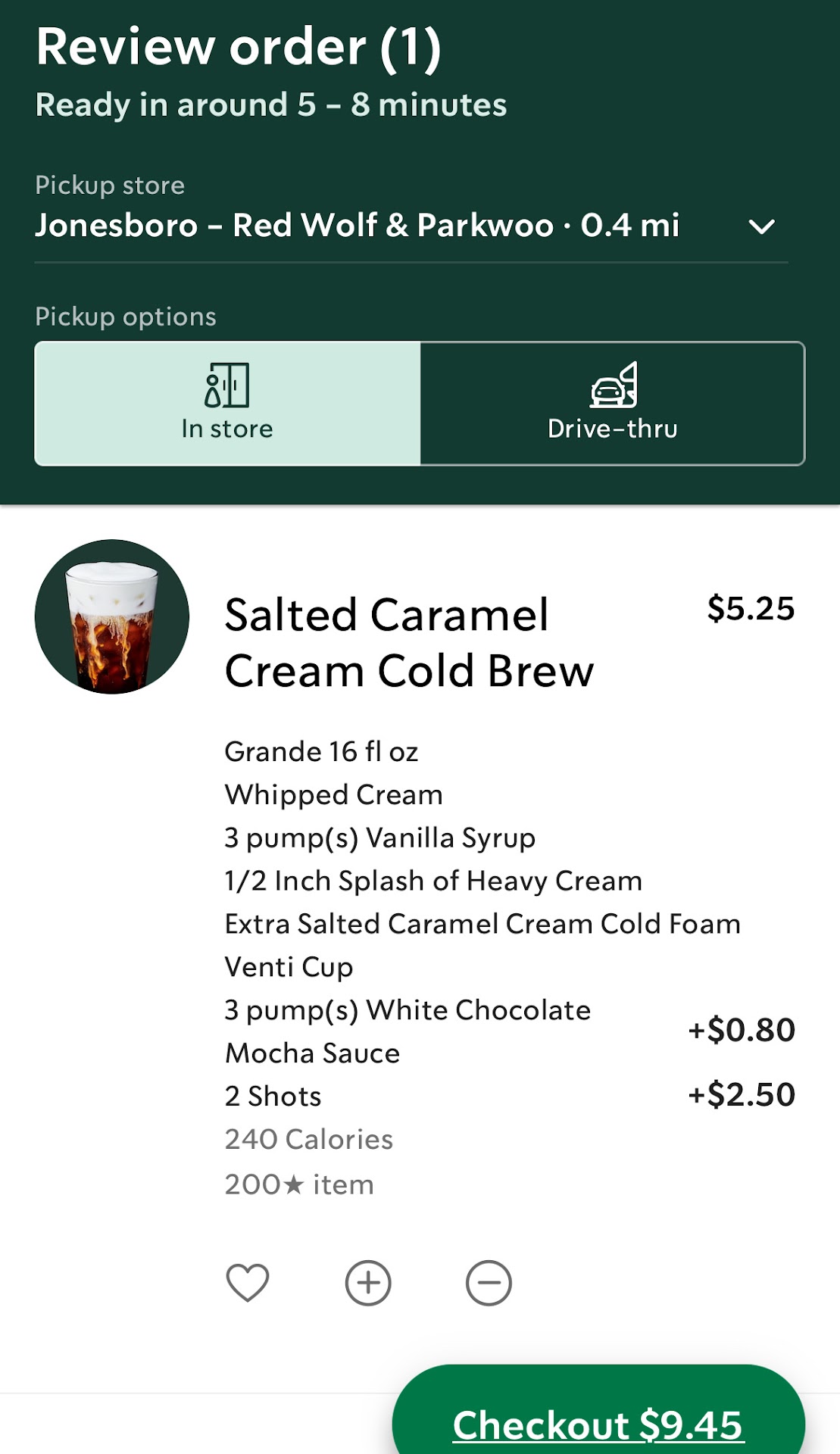 I ordered a grande salted caramel cream cold brew with whipped cream, 3 pumps vanilla syrup, heavy cream, 3 pumps white chocolate mocha sauce, 2 shots coffee, extra salted caramel cream cold foam.
