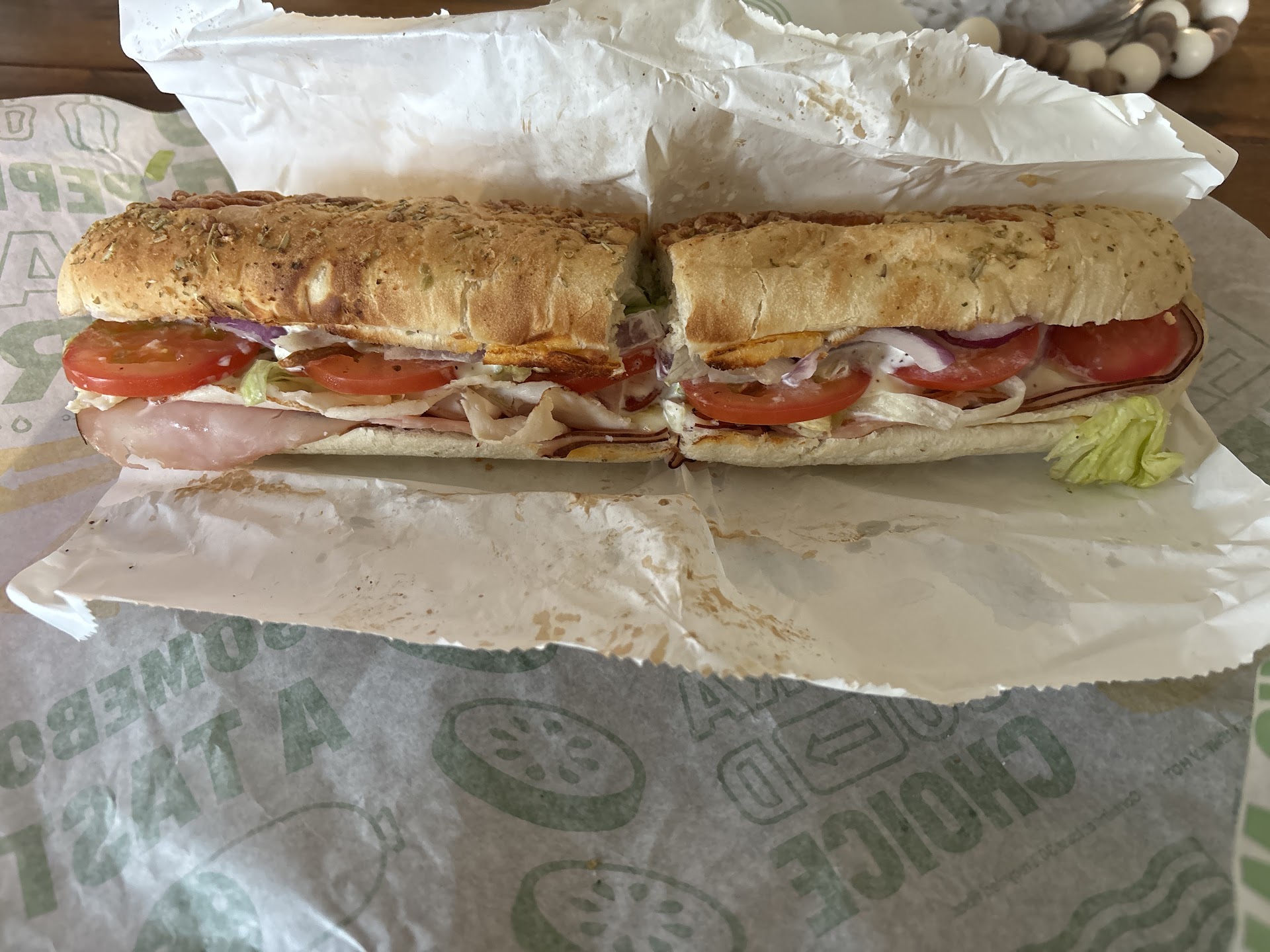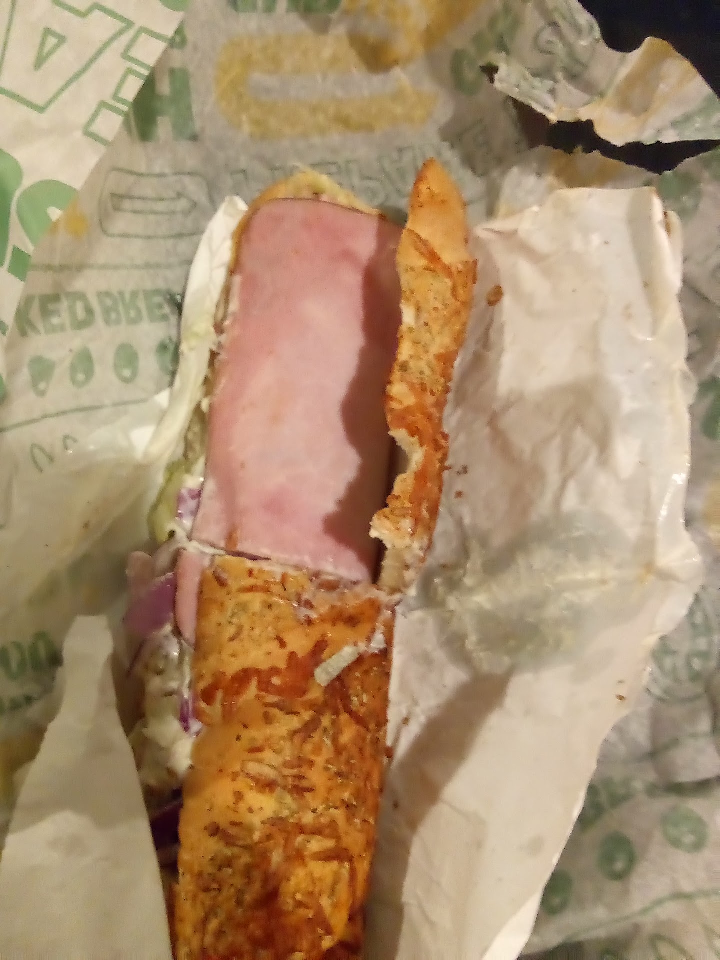 Read moreNot impressed after working at subways before.. I felt rushed the entire time.. after ordering my sandwich and the lady repeating it back to me, I chose my cheese, told her toasted.. I started looking at the vegetables.. instead I should have been watching her! She made me a sandwich I didn’t even order!! How do you get ham out of bmt? Two completely different sandwiches.. and she even confirmed what I ordered.. but she seemed more worried that we weren’t ordering fast enough and there were 2...