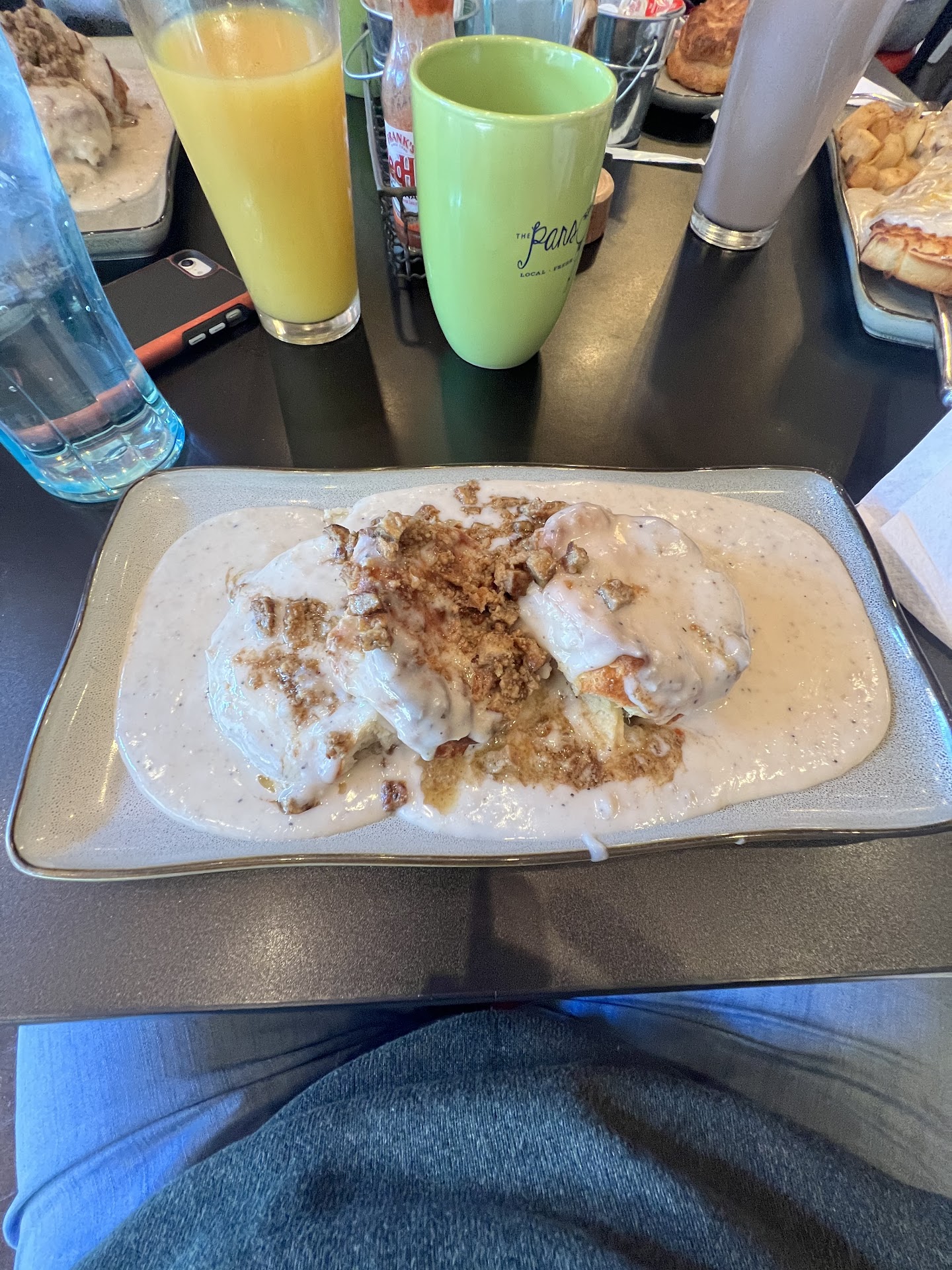 We heard about the alcohol situation from folks at the next table, as well as overheard a waitress explain it to other diners: apparently the place has no liquor license, but serves mimosas and bloody Marys for free. "If you order a few, I guess we'd charge you for an orange juice," she said. We were not offered this opportunity, though, and no staff came by after we'd heard. I don't want to pay $12 for runny eggs just to subsidize other folks' drinks. Also I'm not 100% sure this is legal, even in Arkansas.
