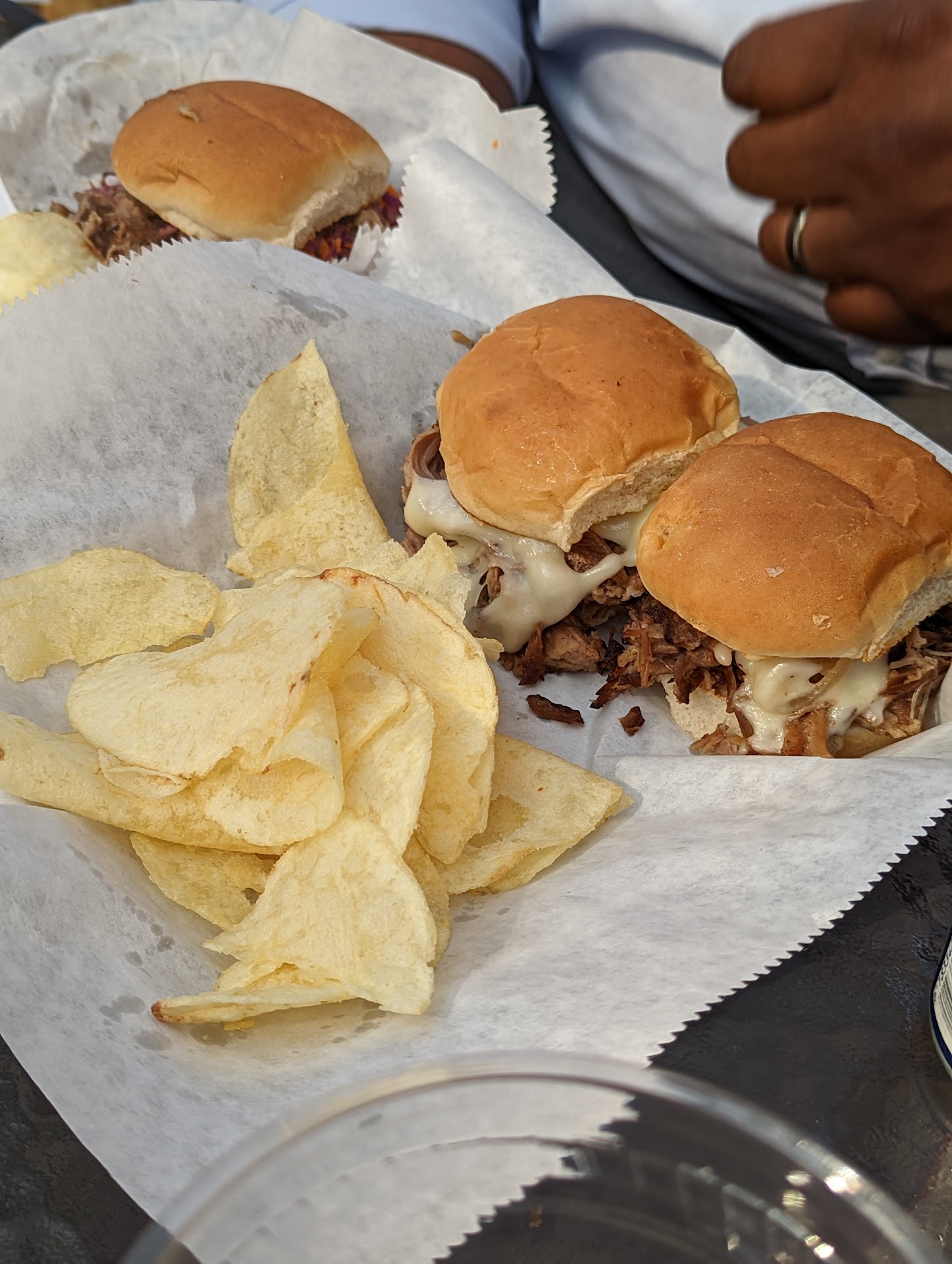 Well, taste is subjective just remember that. I thought the food was average. Chicken and waffle order had to be substituted bc they were out of curry but i was told it was delicious. I thought the sliders were a little on the dry side and the Ultimate Grilled Cheese was ok, it had a half of a strip of bacon. The spicy hummus with spicy crackers was really good! I wouldn't come back for the food at Porch Thirty but i would come back to try some of the other food establishments on the grounds. I prefer outdoor places since COVID and there are not a lot of those places in Jonesboro so it's really nice that this place exists. They do serve beer, however, and they have a TV screen in the porch area so you can just come and have drinks and watch whatever sport is in season and not order any food. When we went the pizza place was not open, Burgos was closed and i didn't see the Donburi business at all. So, i think Donburi longer exists at this establishment. There is a nice open area once you come in through the Porch Thirty part and I think i remember seeing some monkey bars or something like that for kids to play on. There are other places to sit and eat throughout but you have to go to each individual food trailer and order your food. There is no table service. They do require a CC when opening a tab, which i don't like. I've been to many establishments, high-end and otherwise, that did not require you to surrender your debit/card at the bar in order to open a tab. Some places have asked for a DL or have asked to see it and then they just write down my info and send me on my way with my beer. There is also a tip jar at each window. I personally think the tipping culture in general is a little off kilter. There is no table service, you have to walk up to each business, place your order, go pick up your order when it's ready, (this includes the beer part) bring it back to your table, go back and ask for extra utensils, napkins, etc., and they think it's appropriate to ask for a tip. Why? You literally are doing the minimum in fulfilling your job description and getting a paycheck for that. Nothing extra was done for the customer, drinks were not brought out, at the window for drinks service was barely delivered with a smile and as soon as she was able she slid the window shut and got back to scrolling on her phone. The girl at the bar acted as if we showed up uninvited to her home asking her for stuff from her own cupboards, it's like the customer was a bother to her. The girl with the bike was a lot more pleasant and efficient. Despite the poor service at the drinks trailer, the rest was a pleasant visit and i would like to come back and try some of the other...