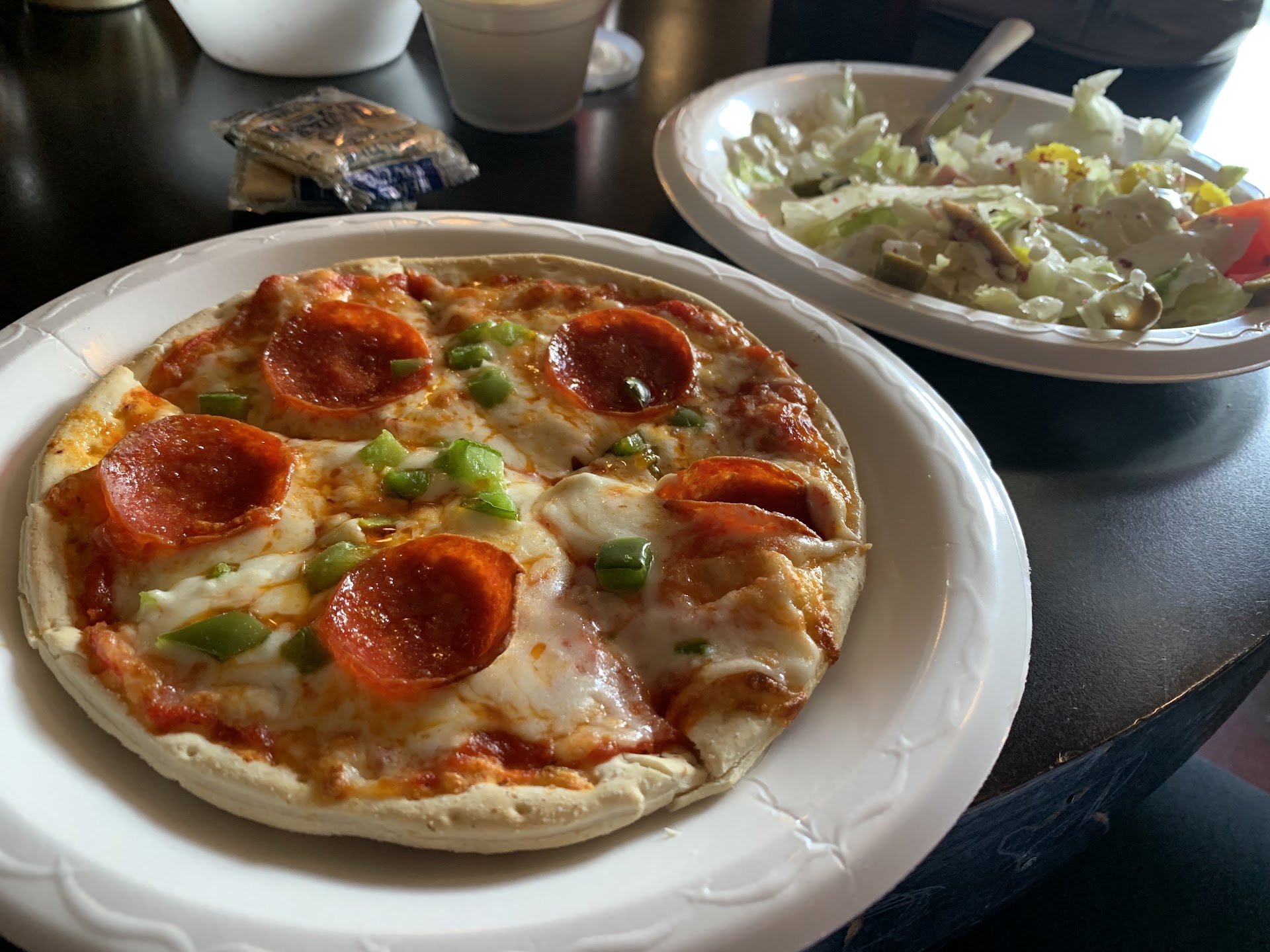 Favorite pizza place! I don't eat ranch dressing anywhere but here! Italian is my dressing of choice, but their ranch dressing is to die for! And their salad, no where else can u get a salad with all that in it for that kind of price!!! I can't eat pizza, it kills my stomach, but I let my ulcer have a field day cause I love their pizza so much lol! No other place is worth that much pain...only here! I've never had anything from here that I didn't enjoy, pizza, sub, salad! And did I mention the tea! Yummy! I eat here at least once a week lol! My favorite place to eat ❤❤ I can feed my family of 6 for less than $40 IT makes my wallet and my...